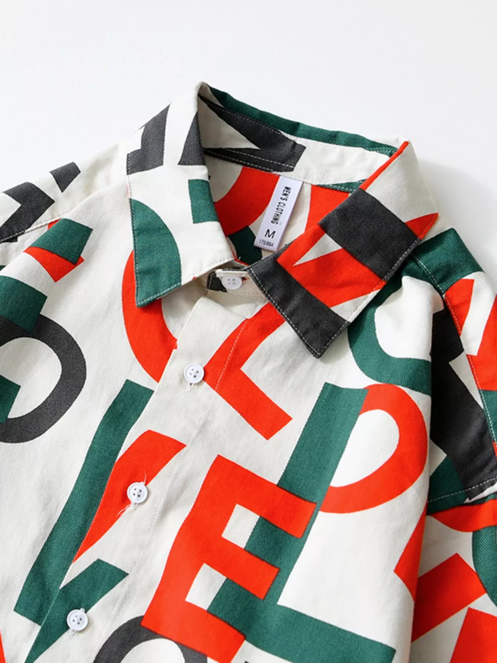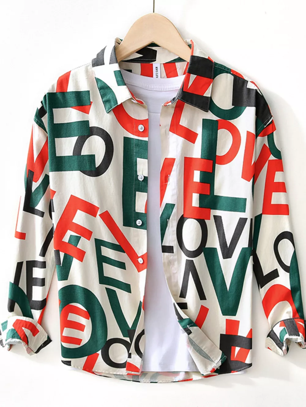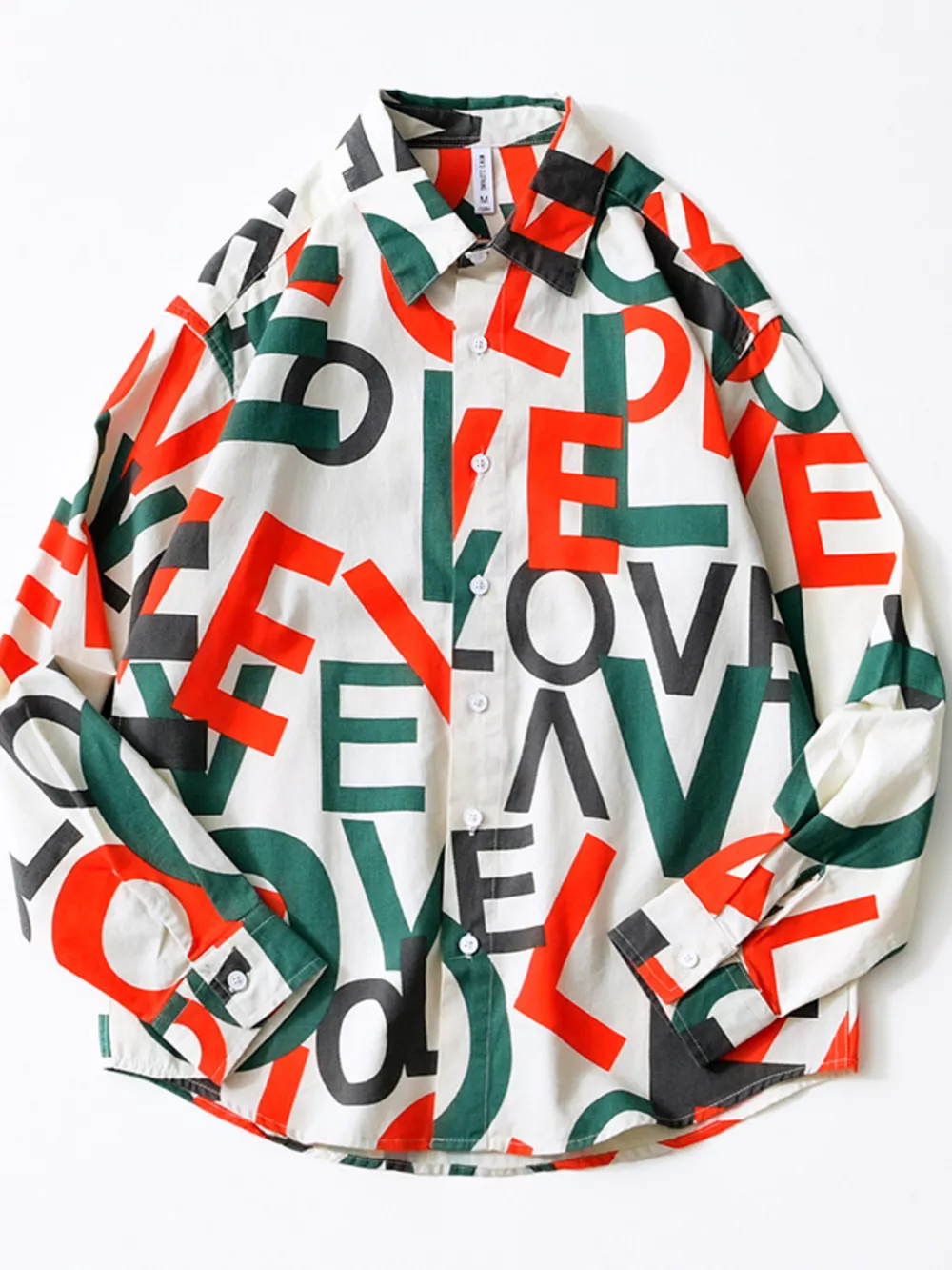 Men's Plus Size Letter Print Long Sleeve Shirt