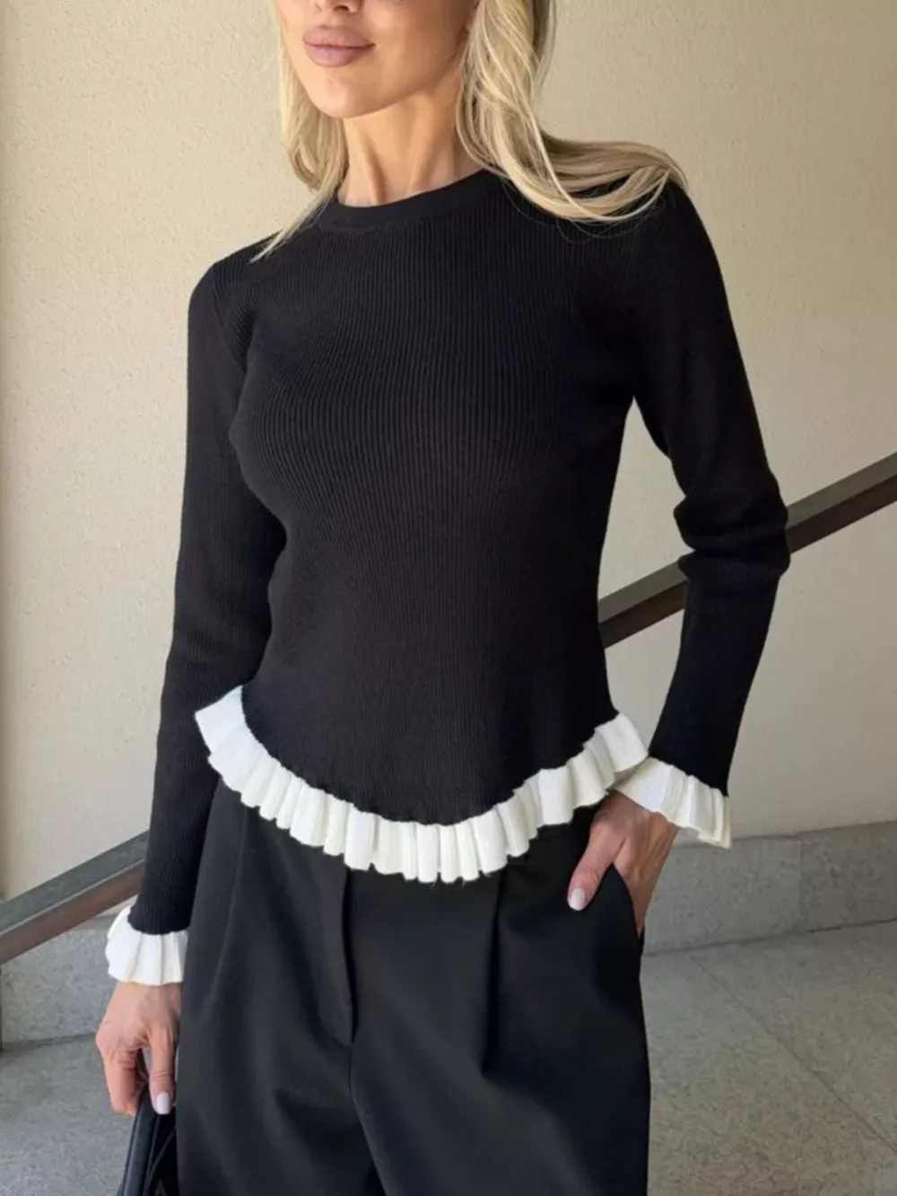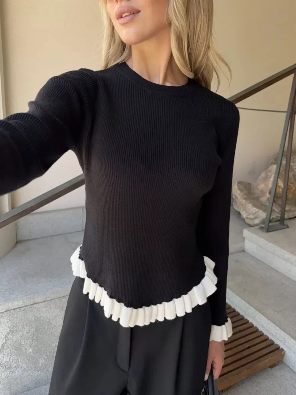 Ruffle Trim Long Sleeve Sweater