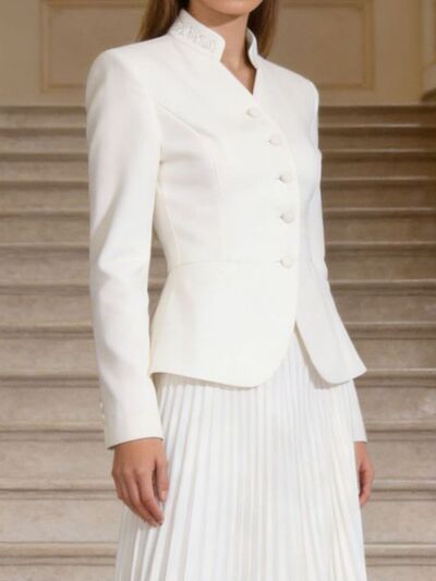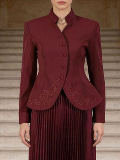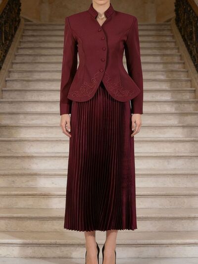 Button Up Long Sleeve Top and Pleated Skirt Set
