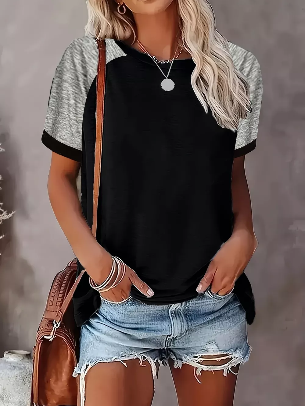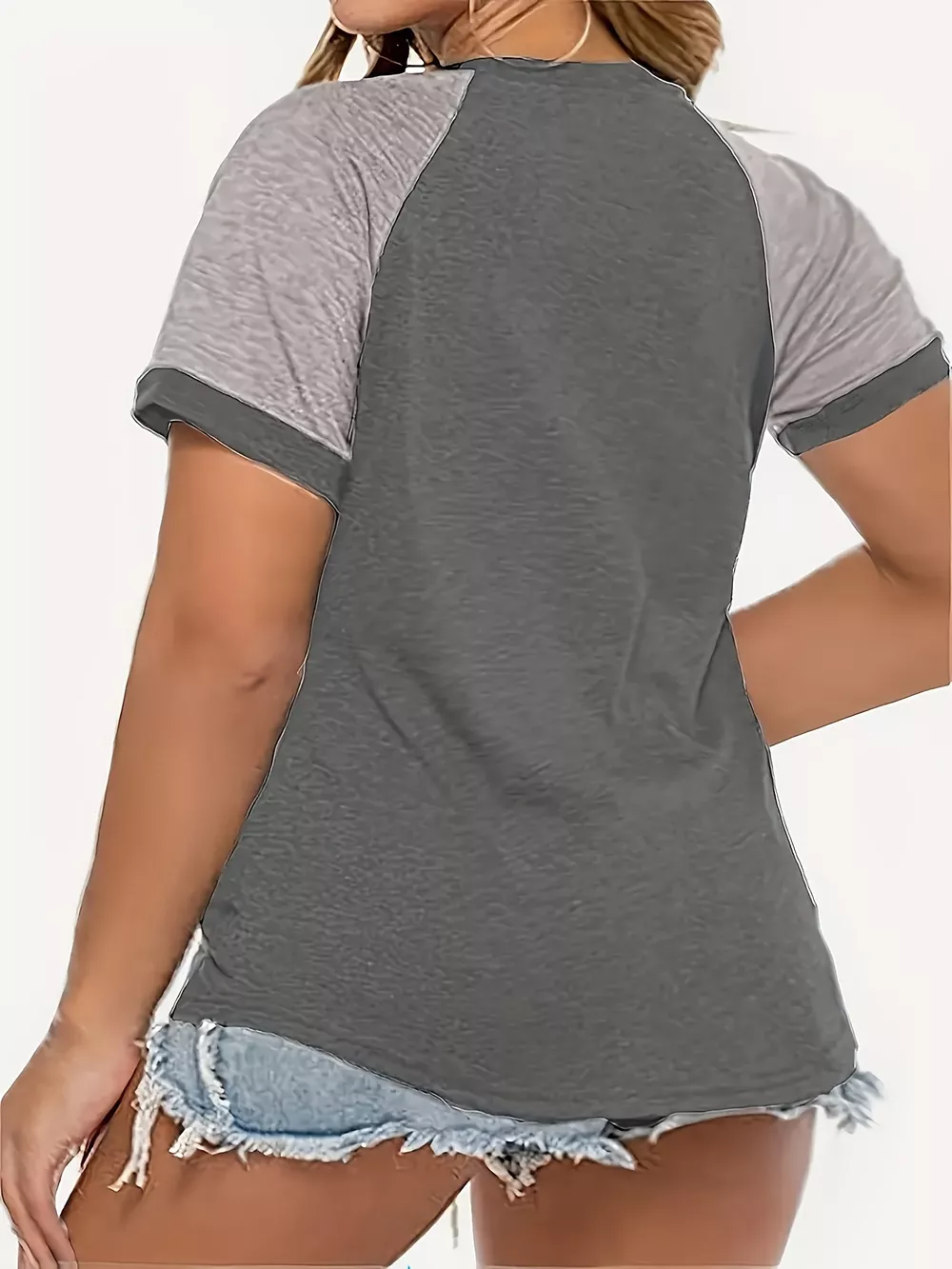 Plus Size Casual Color Block Raglan Sleeve T-Shirt