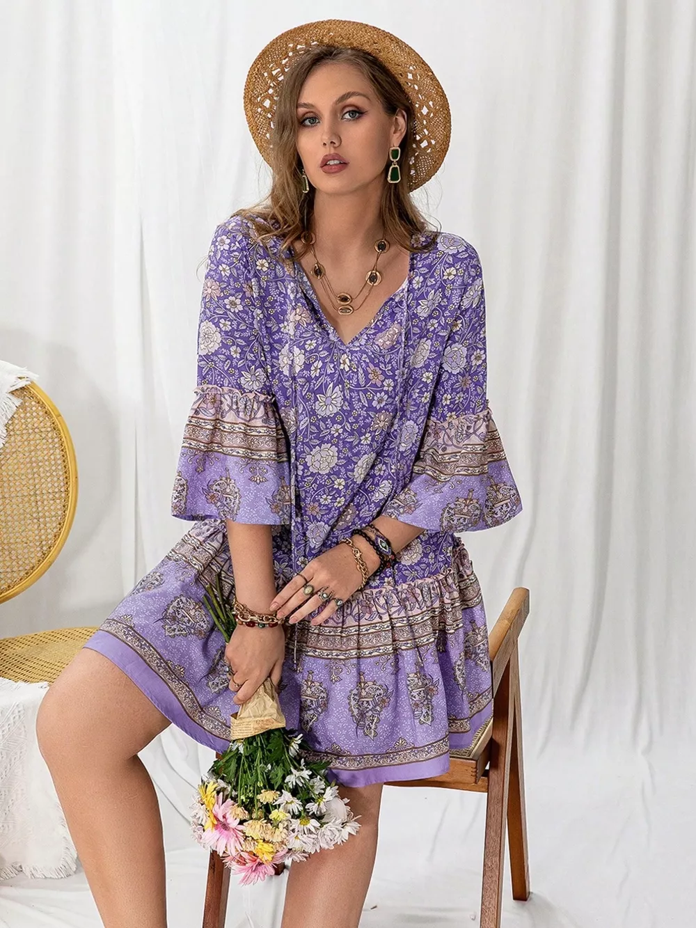 Plus Size Floral Print Ruffle Hem Mini Dress