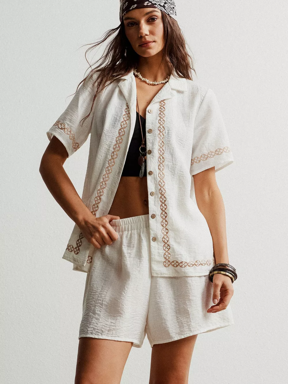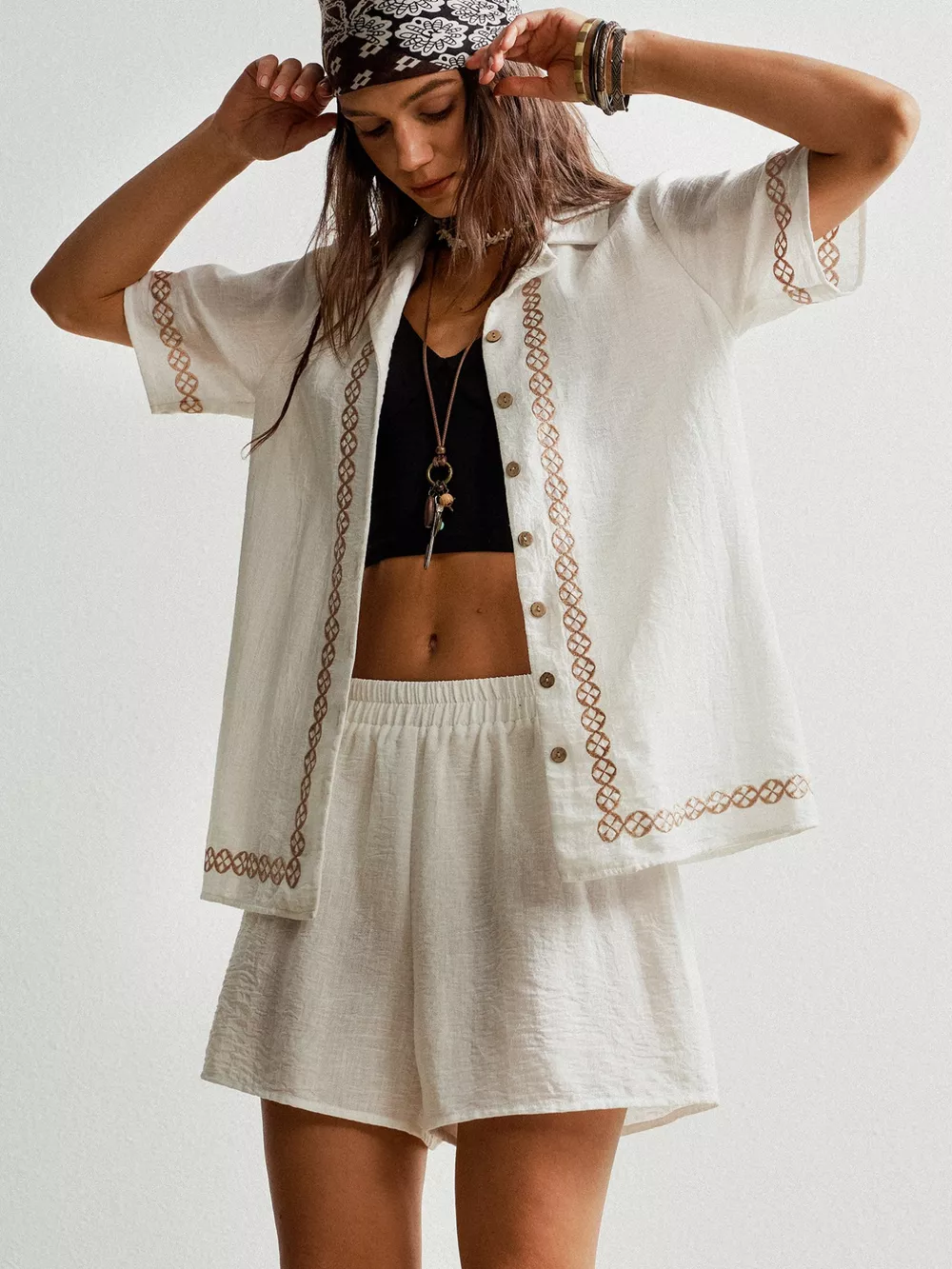 Button Up Short Sleeve Shirt and Shorts Set