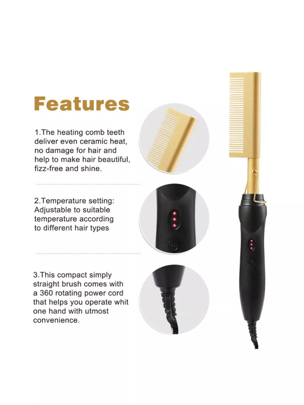 Detailed description of the 2-in-1 Curling Straightening Brush Hair, highlighting quality, design, and unique features that make it appealing to end consumers.