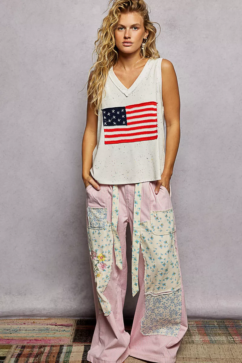 POL V-Neck Ribbed Tank with American Flag Patch and Star Back Patch
