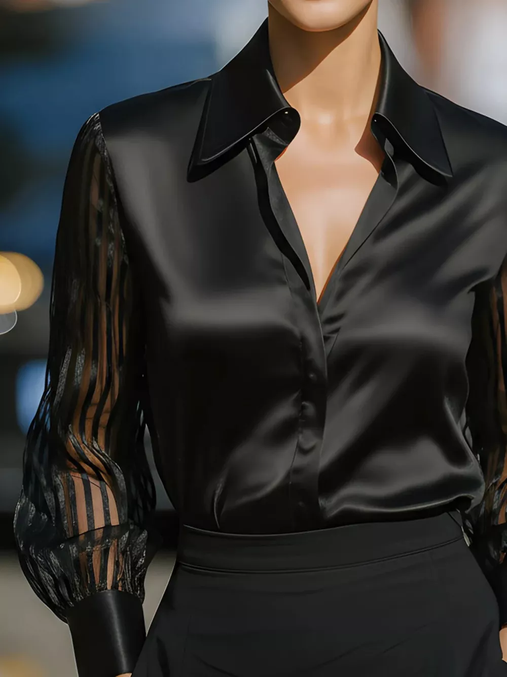 Collared Neck Sheer Sleeve Shirt