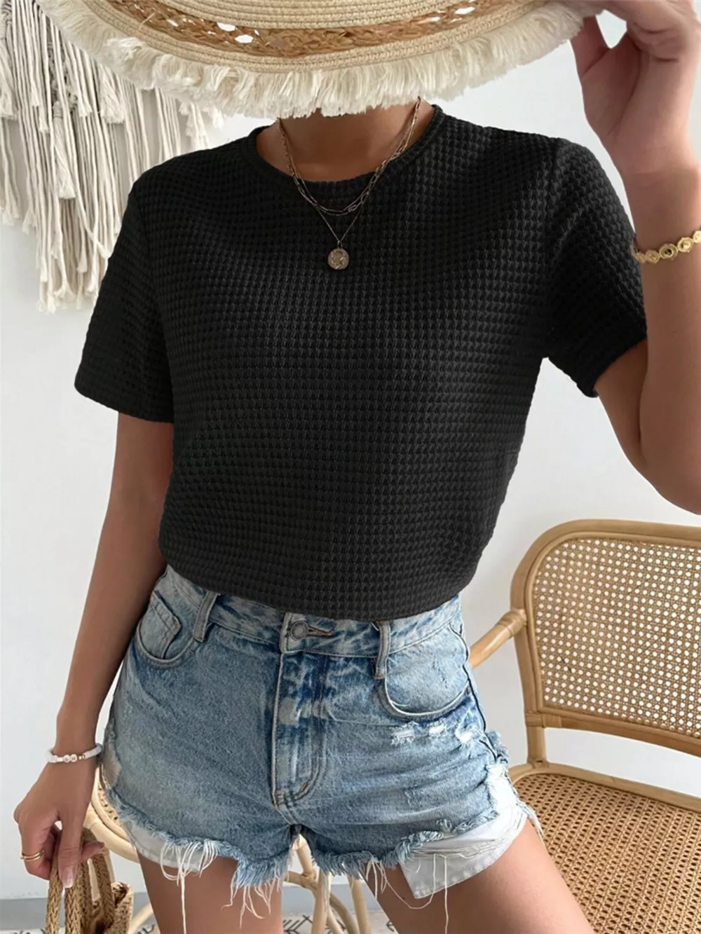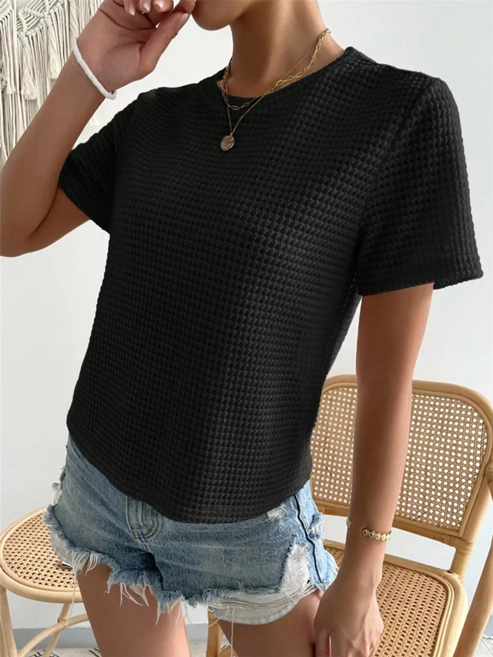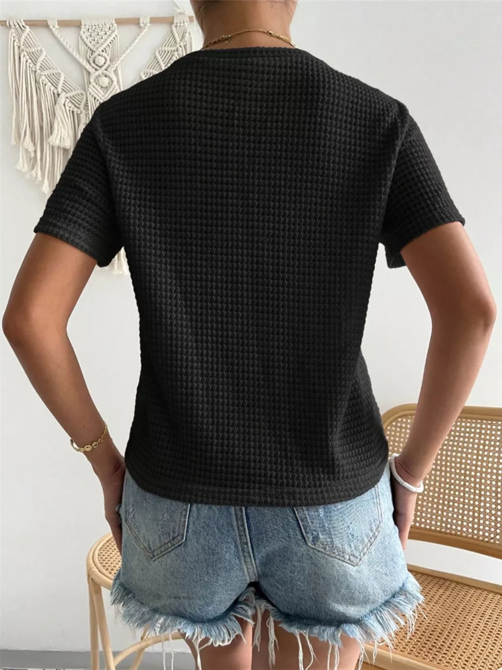 Waffle Knit Short Sleeve T-Shirt