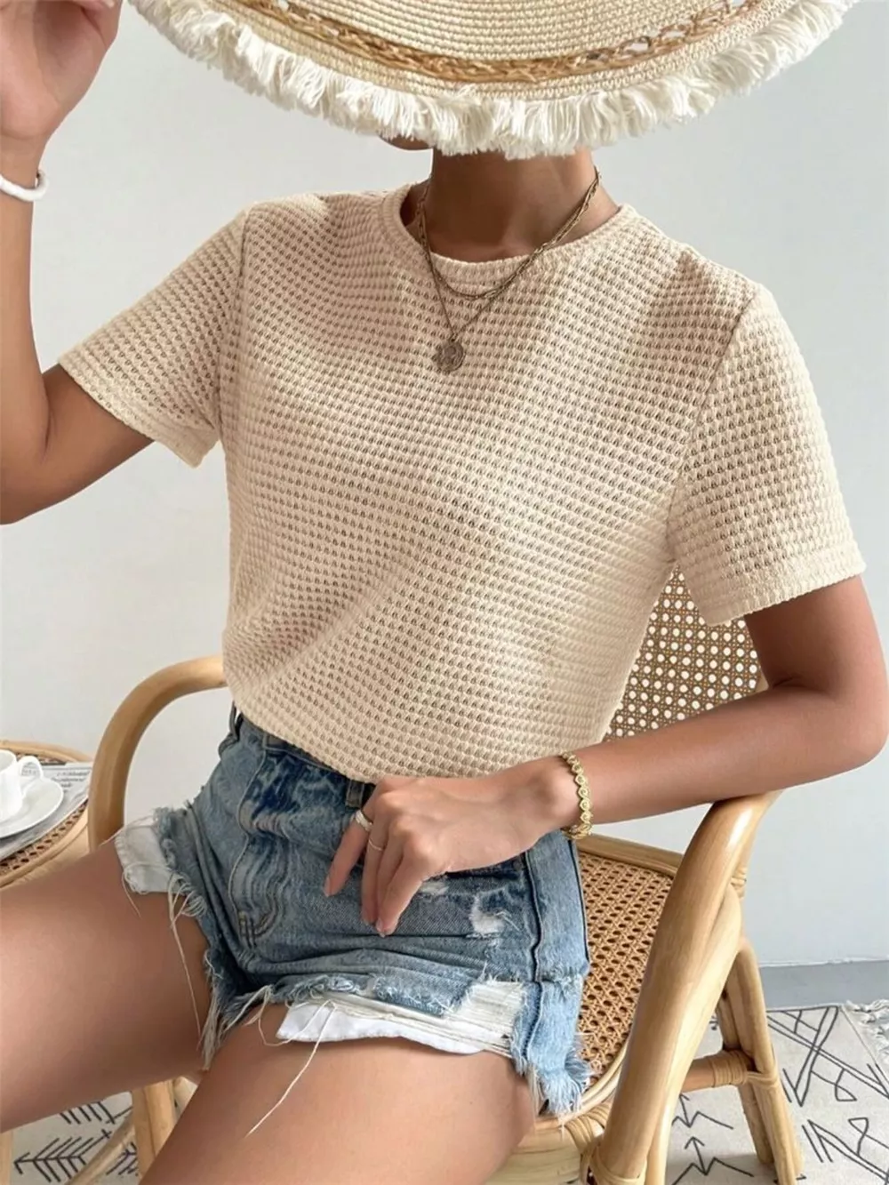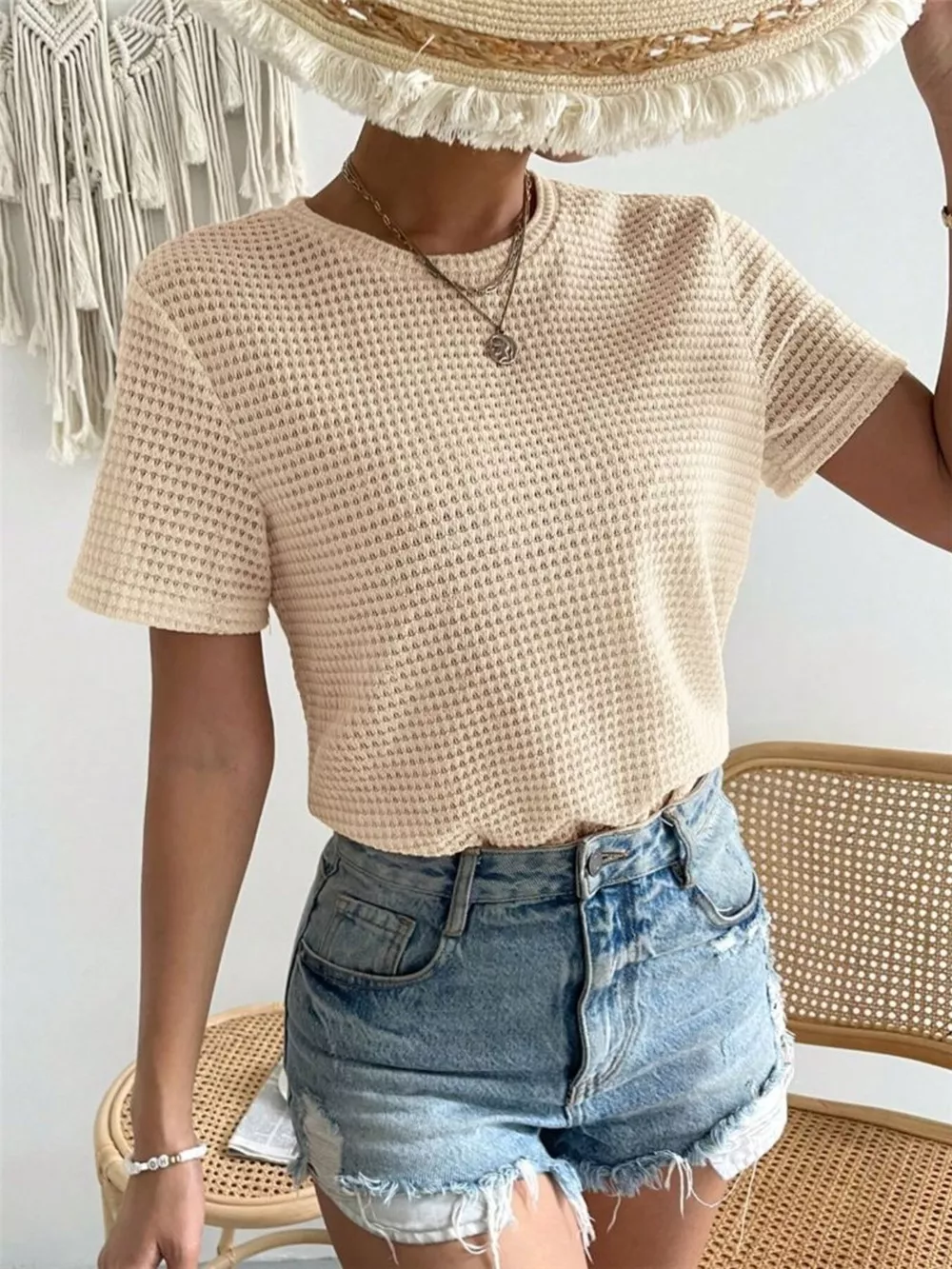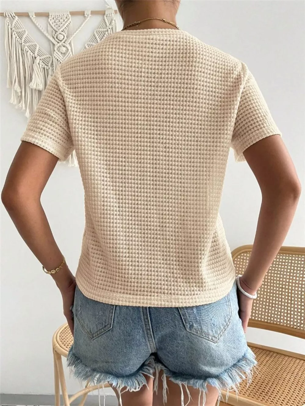 Waffle Knit Short Sleeve T-Shirt