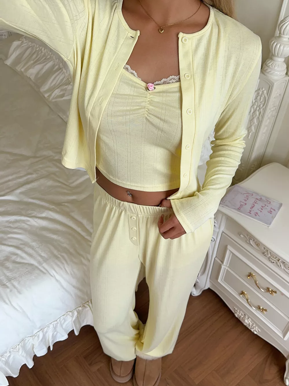 Cami & Long Sleeve Cardigan & Wide Leg Pants Set