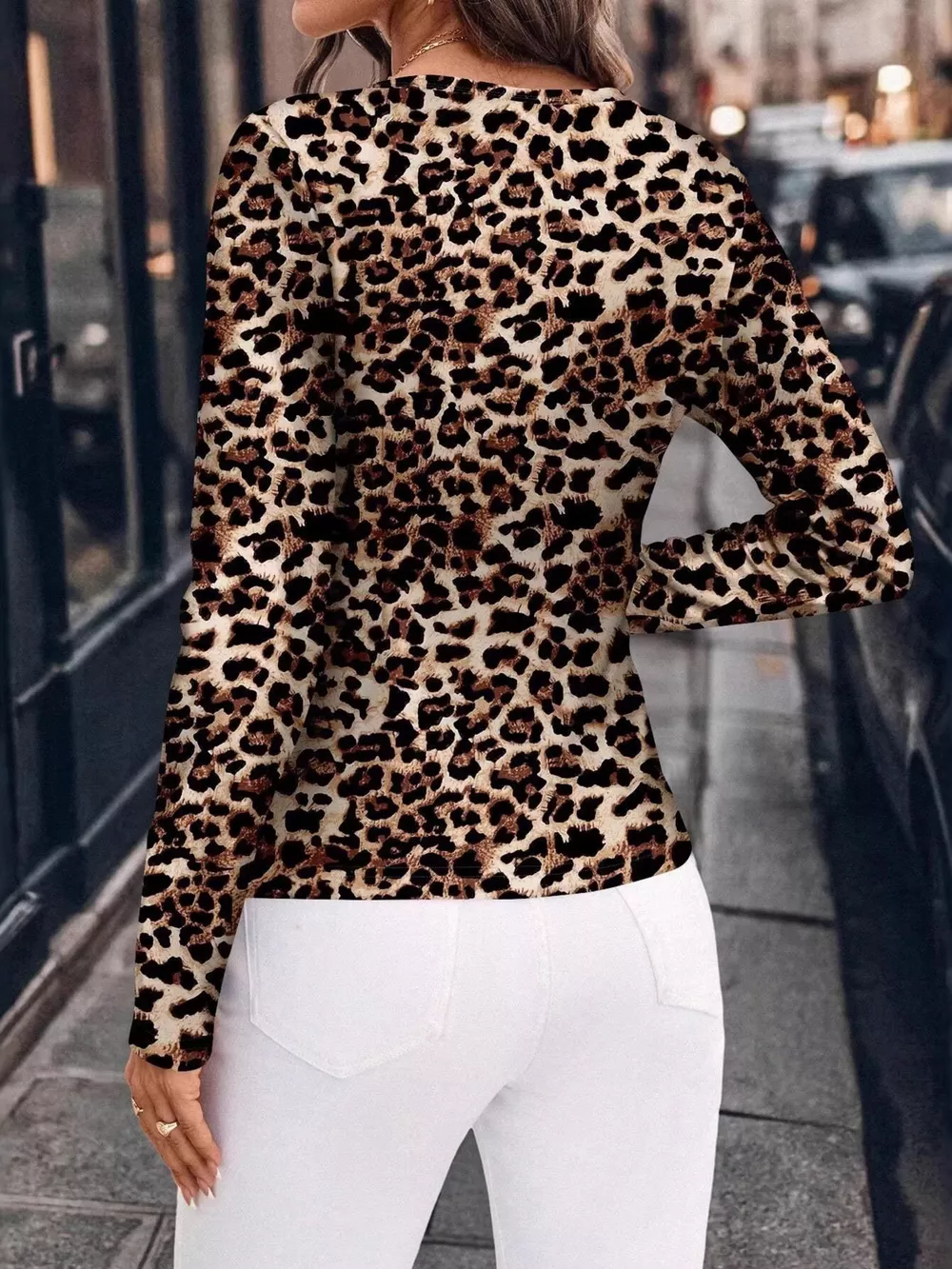Leopard Print Long Sleeve Fitted Blouse