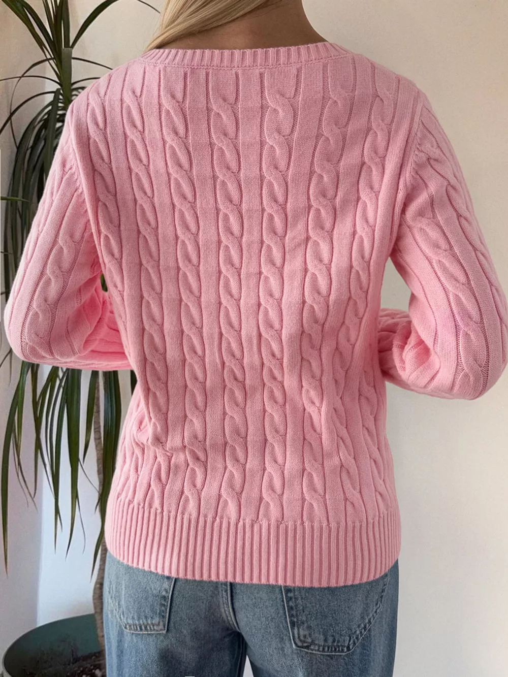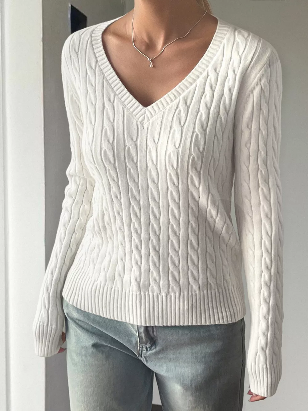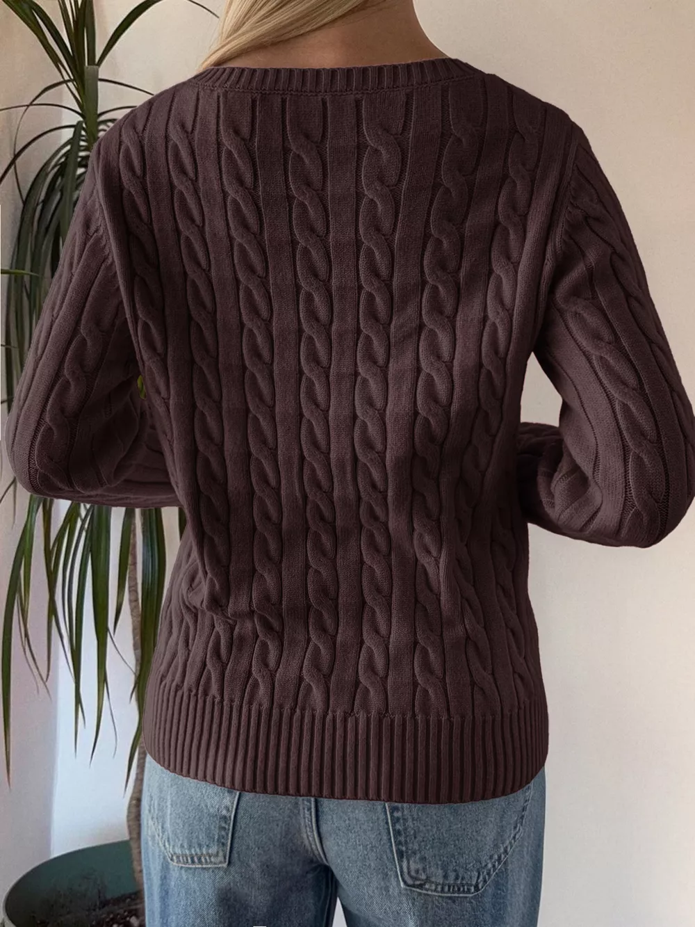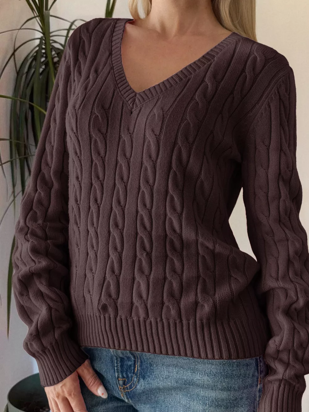 Cable-Knit V-Neck Sweater