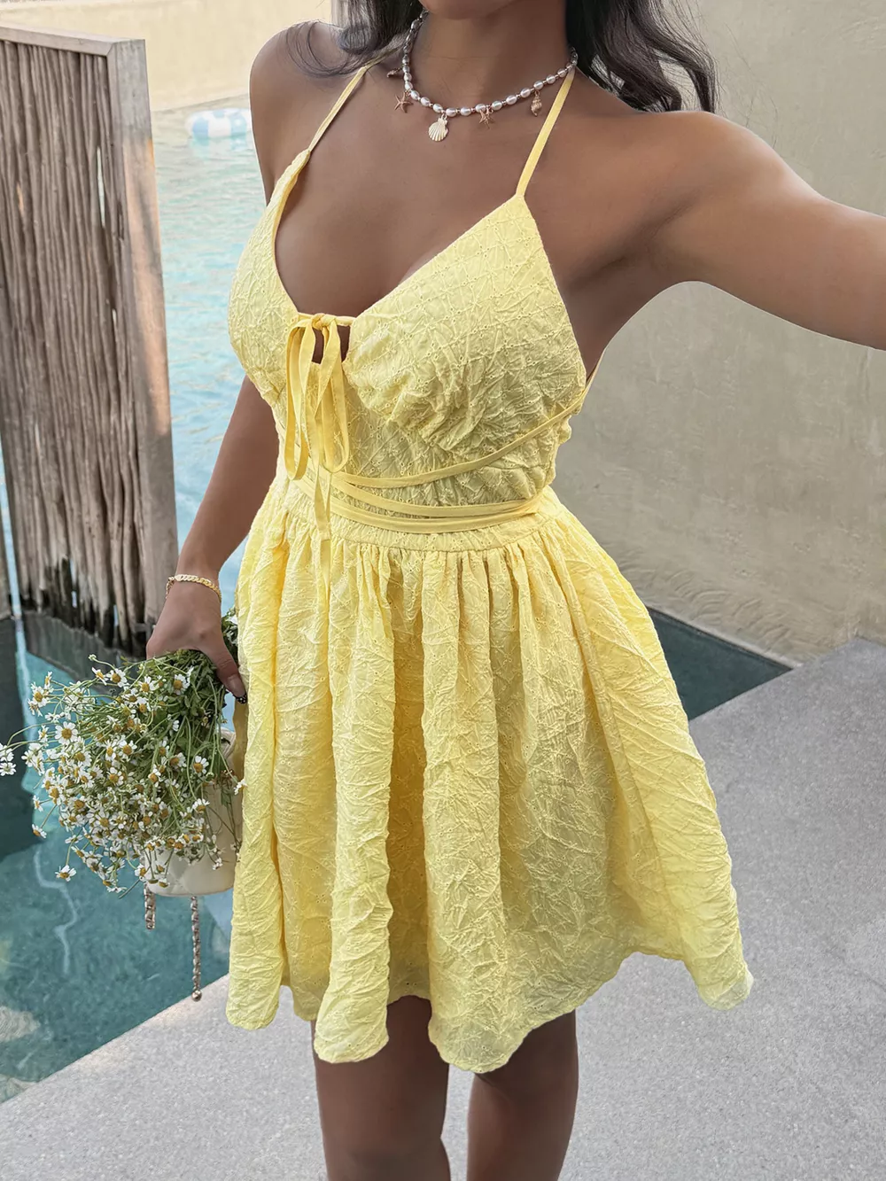 Textured Halter Neck Mini Dress