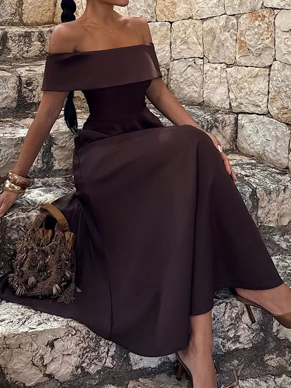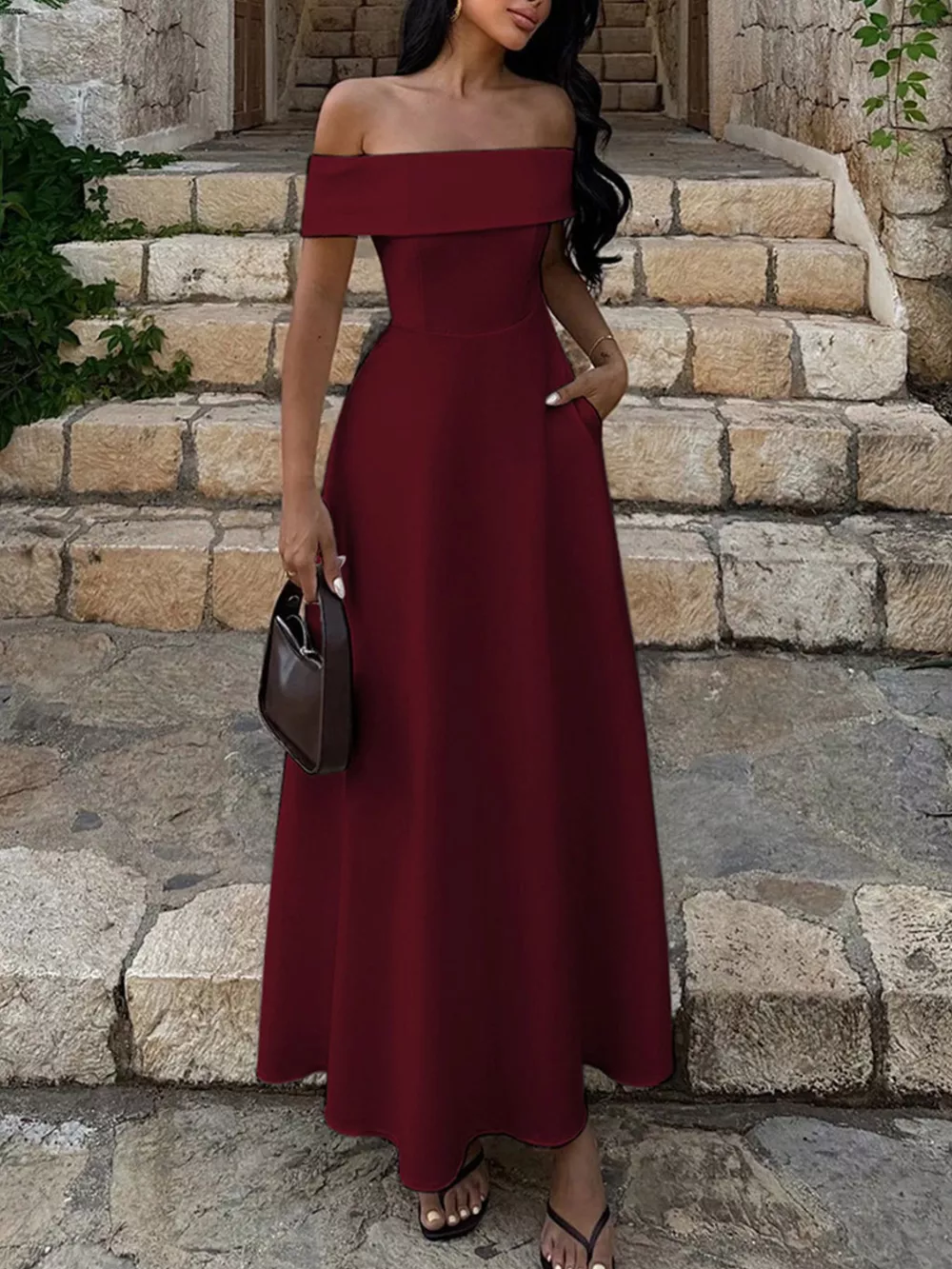 Off-Shoulder A-Line Maxi Dress
