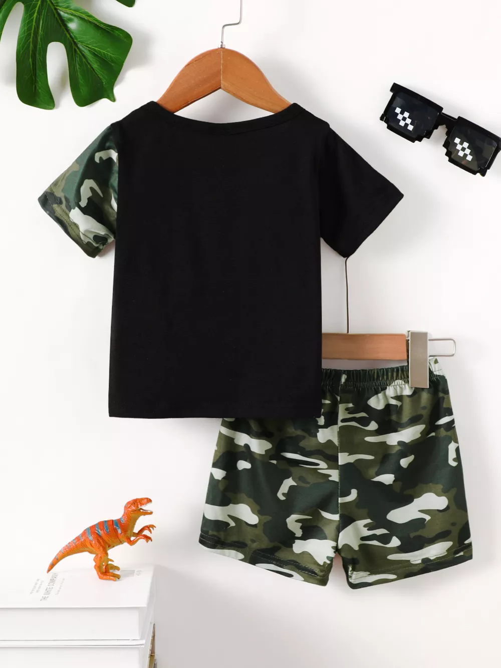Children's Dinosaur Round Neck Tee and Camo Shorts Set