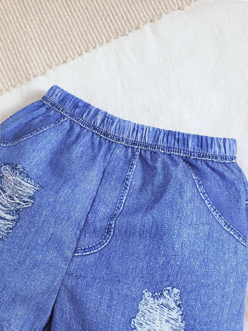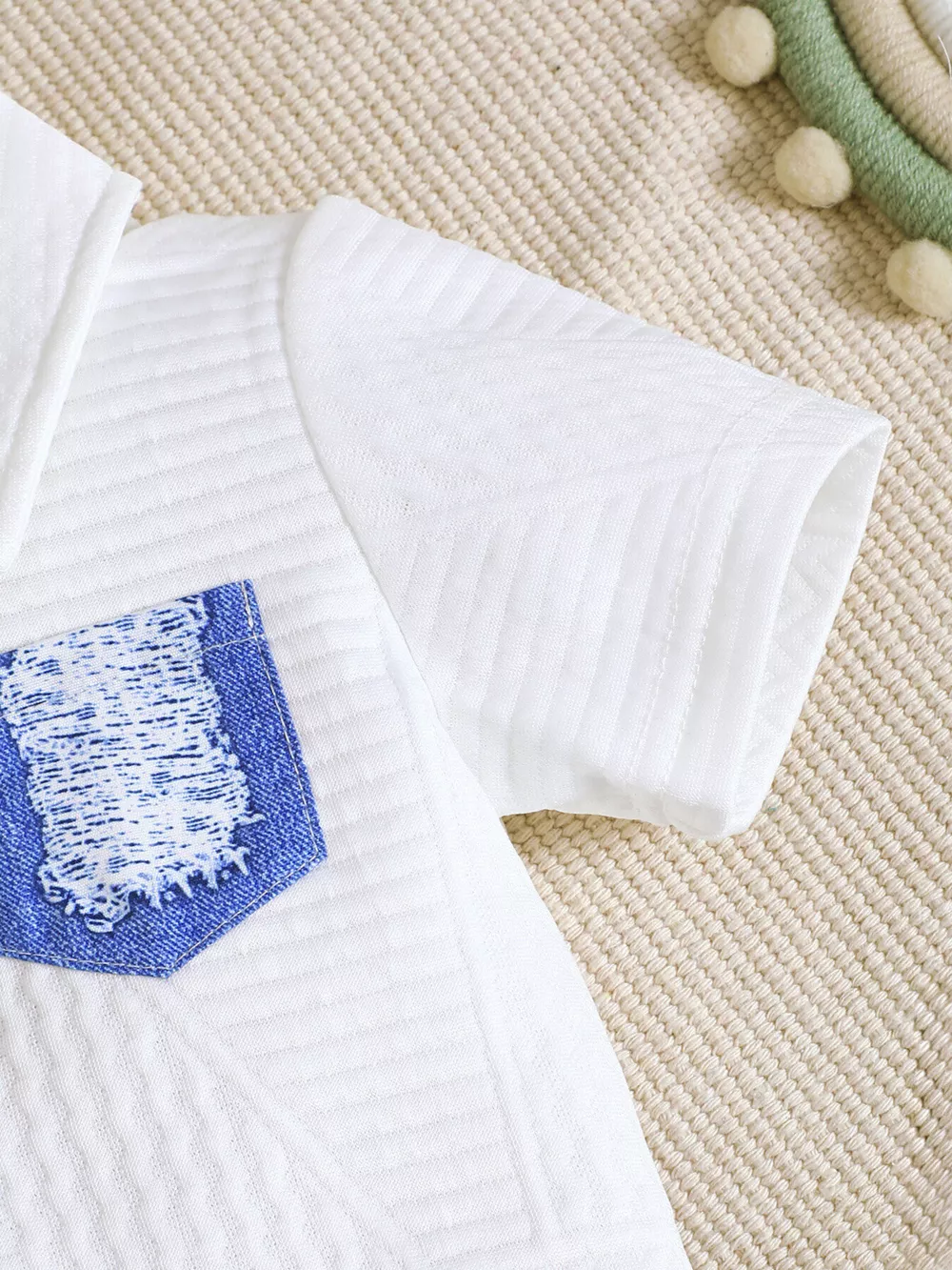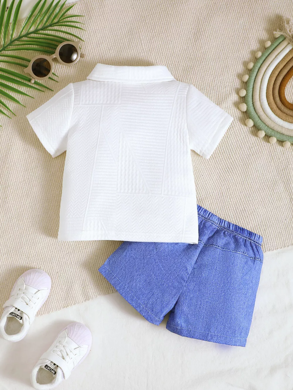 Children's Textured Polo Shirt & Ripped Shorts Set