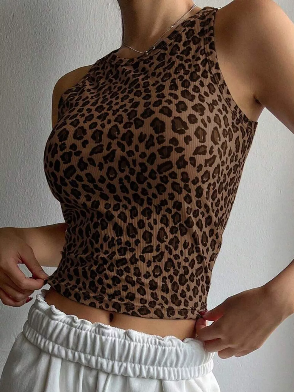 Leopard Ribbed Knit Tank