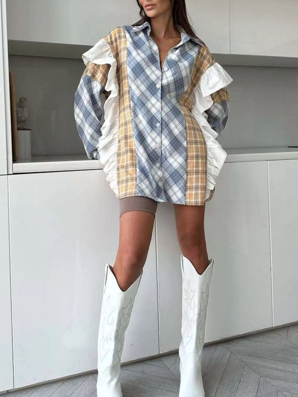 Ruffled Plaid Long Sleeve Shirt