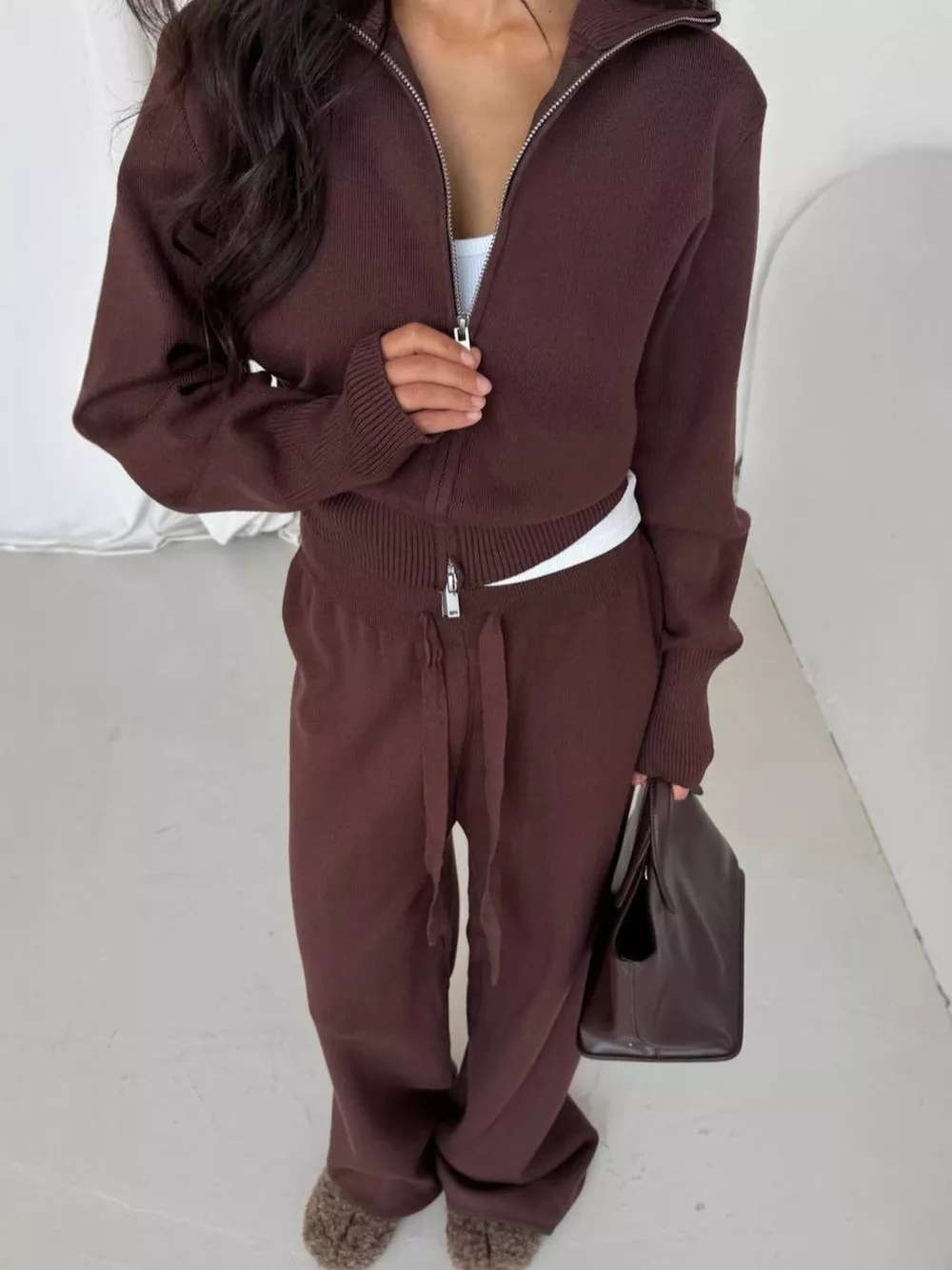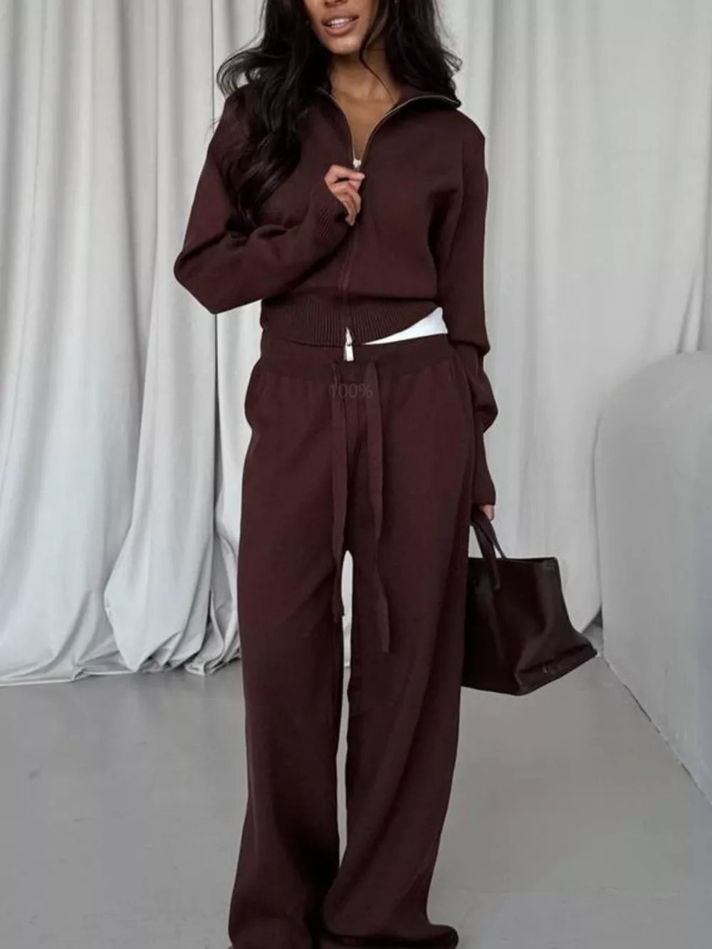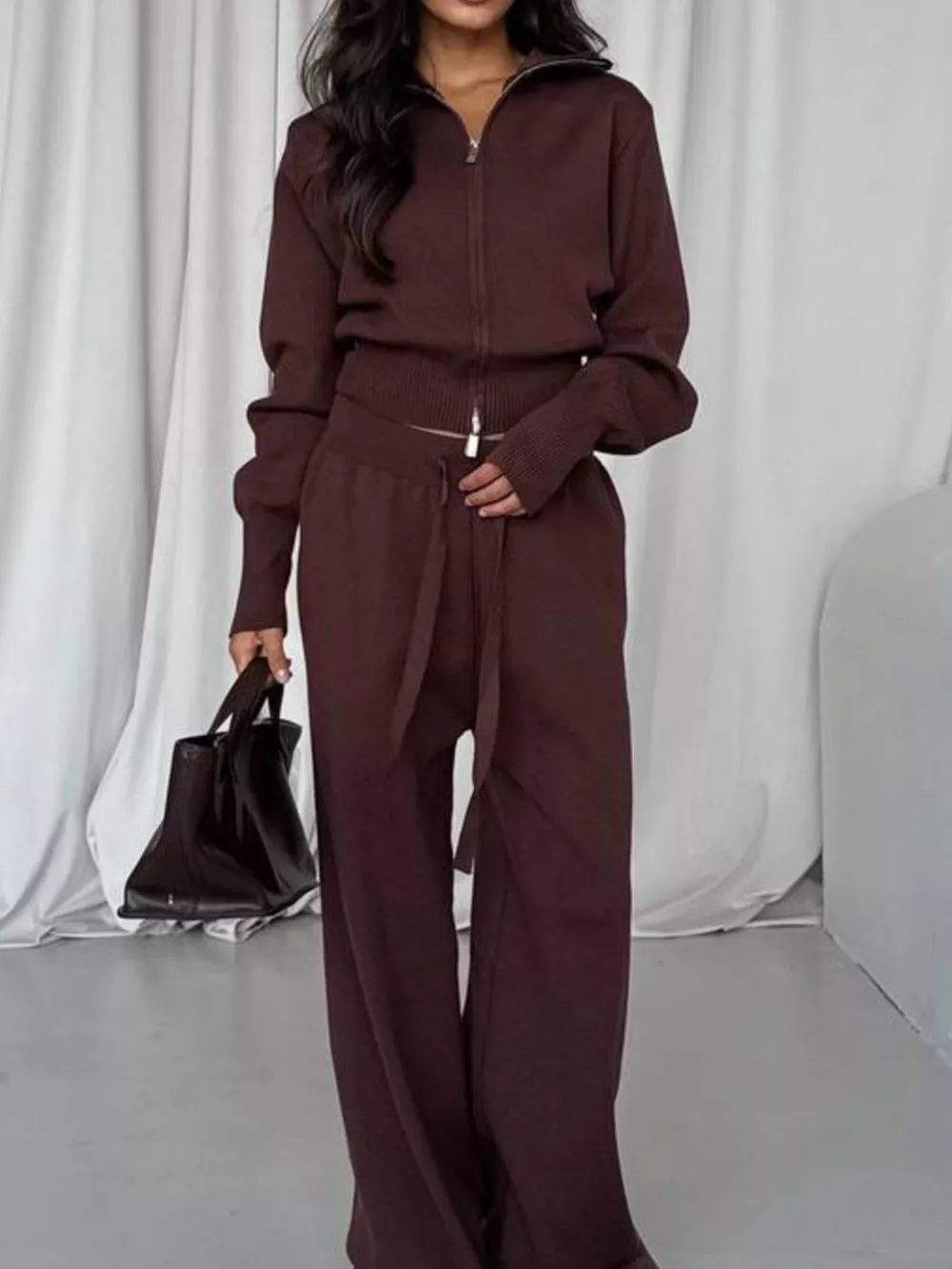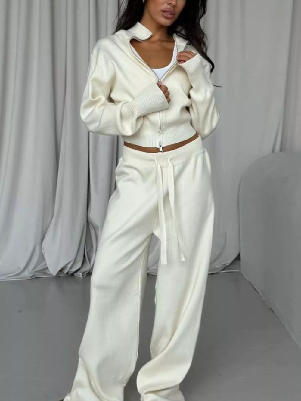 Zip-Up Outerwear and Drawstring Pants Set