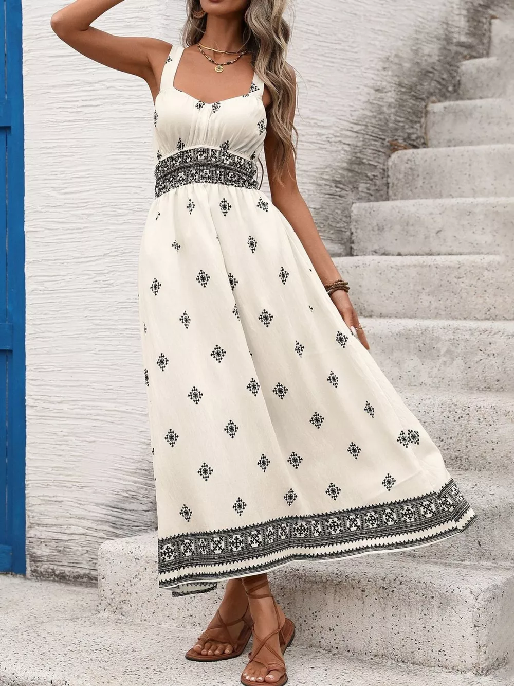 Printed Wide Strap Midi Dress