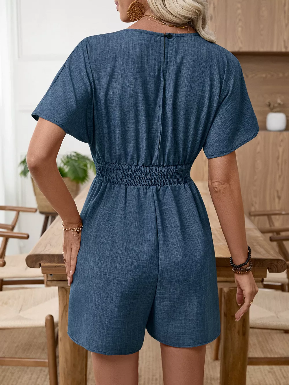 Casual V-Neck Elastic Waist Romper