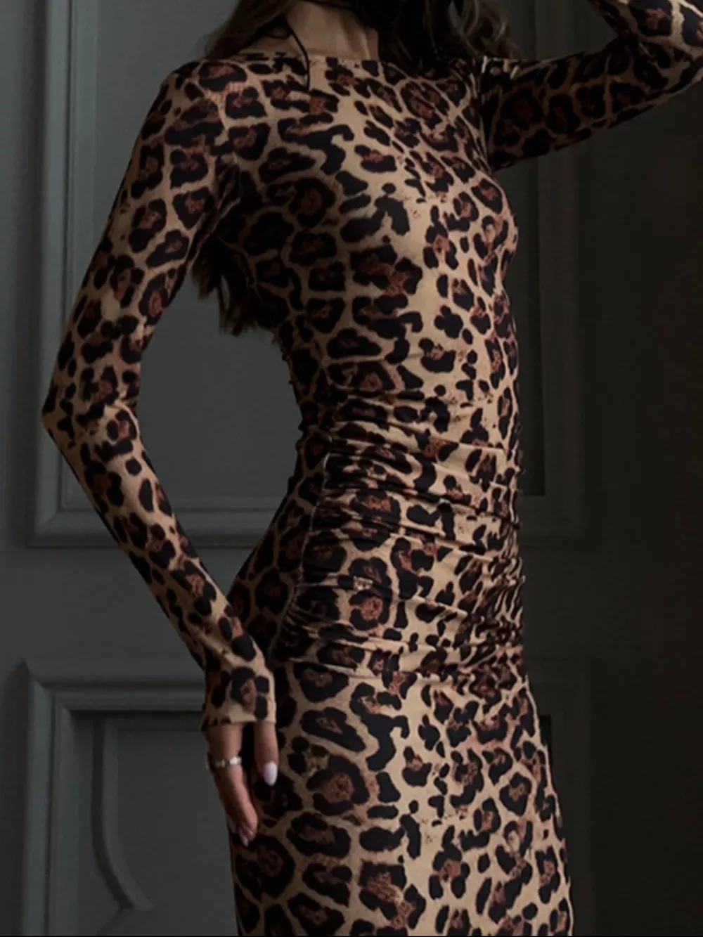 Leopard Print Bodycon Midi Dress