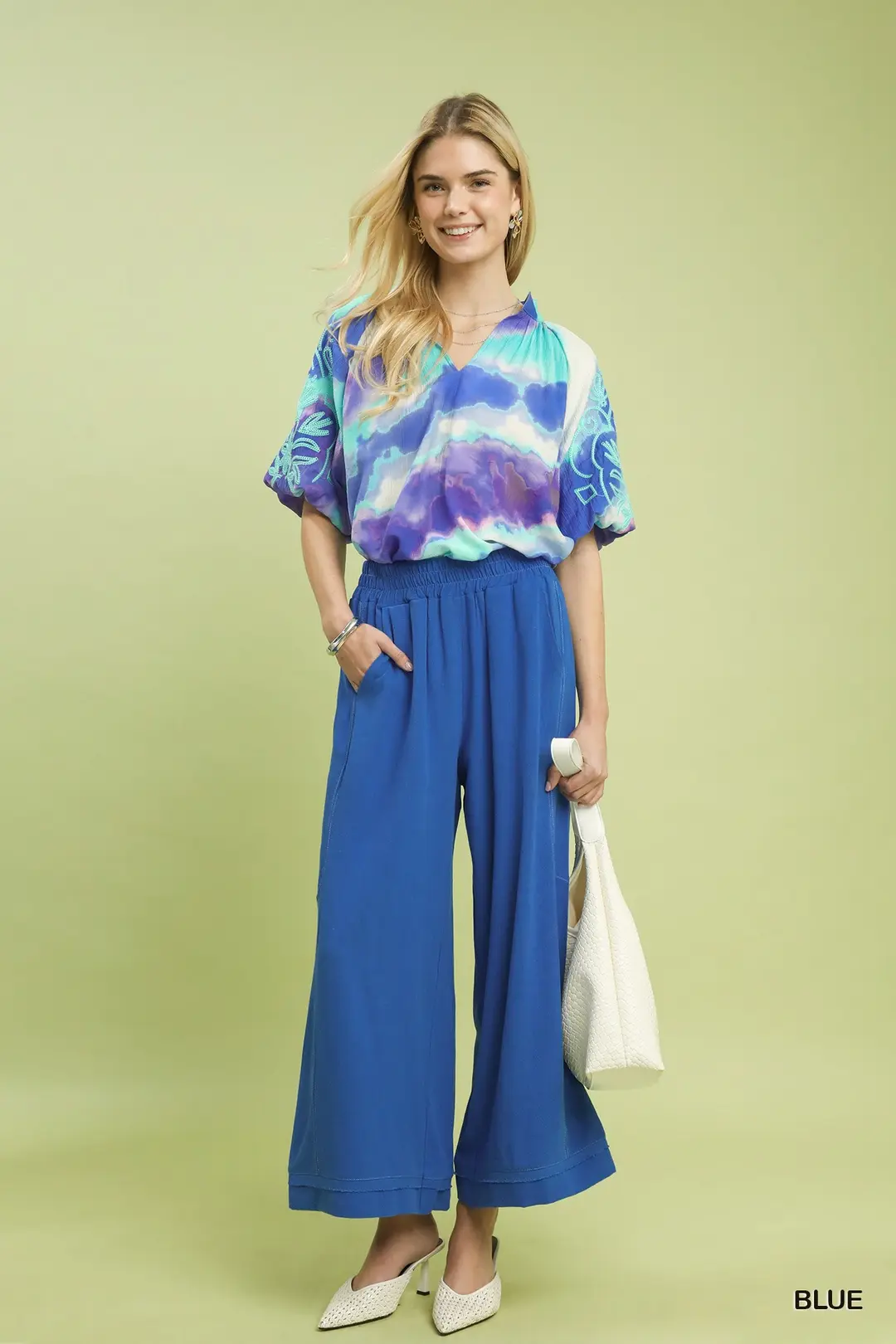 These Linen Elastic Waist Wide Leg Pants in Umgee's Sage color are the epitome of comfort and style. The elastic waistband ensures a flexible and comfortable fit, while the wide leg silhouette offers a relaxed and flowy look. With the addition of side pockets, these pants are as practical as they are fashionable. The contrast stitch detailing adds a touch of sophistication to the design. Ideal for casual outings or lounging at home, these pants are a versatile and must-have addition to your wardrobe.