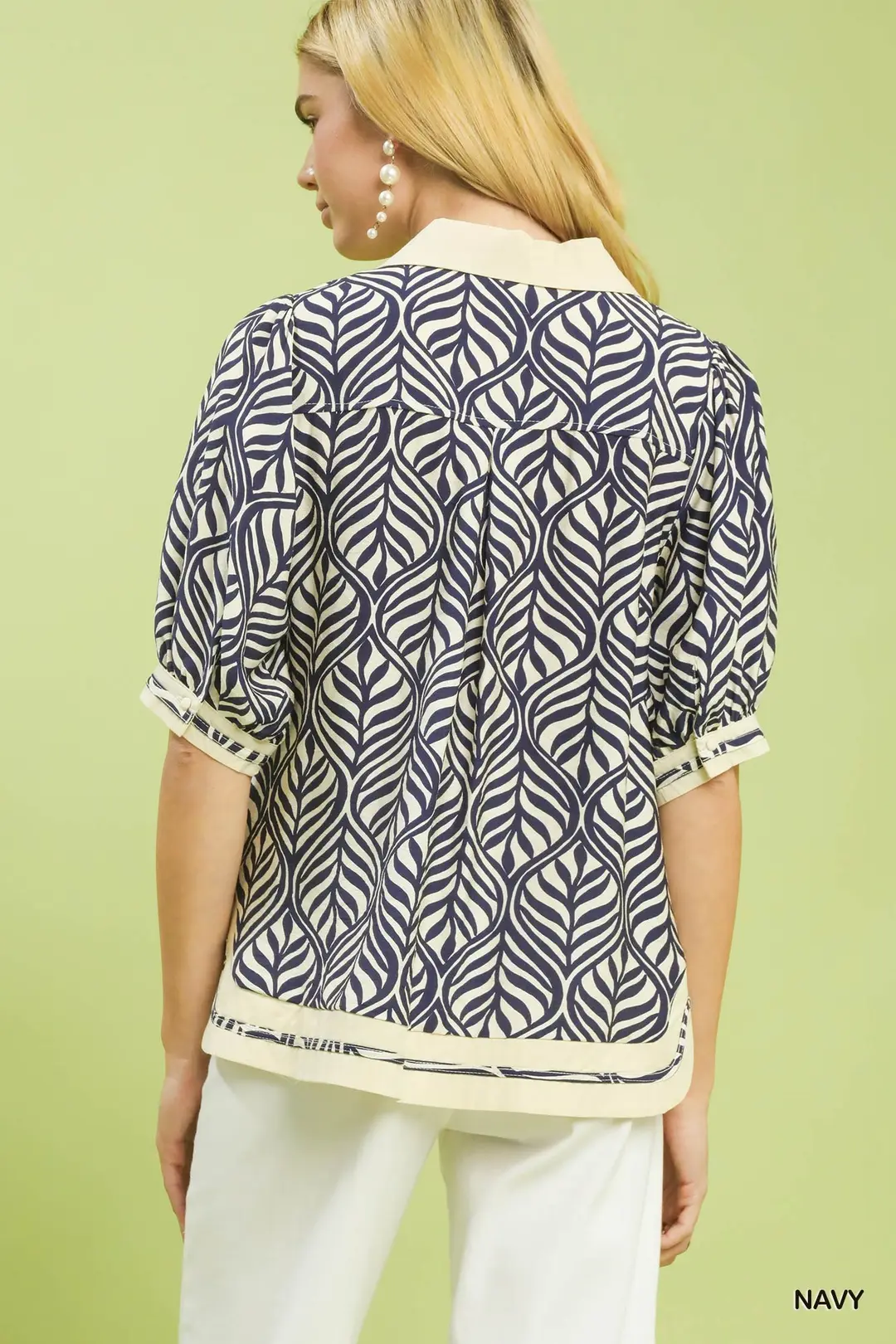 Umgee Geometric Leaf Print Popover Top