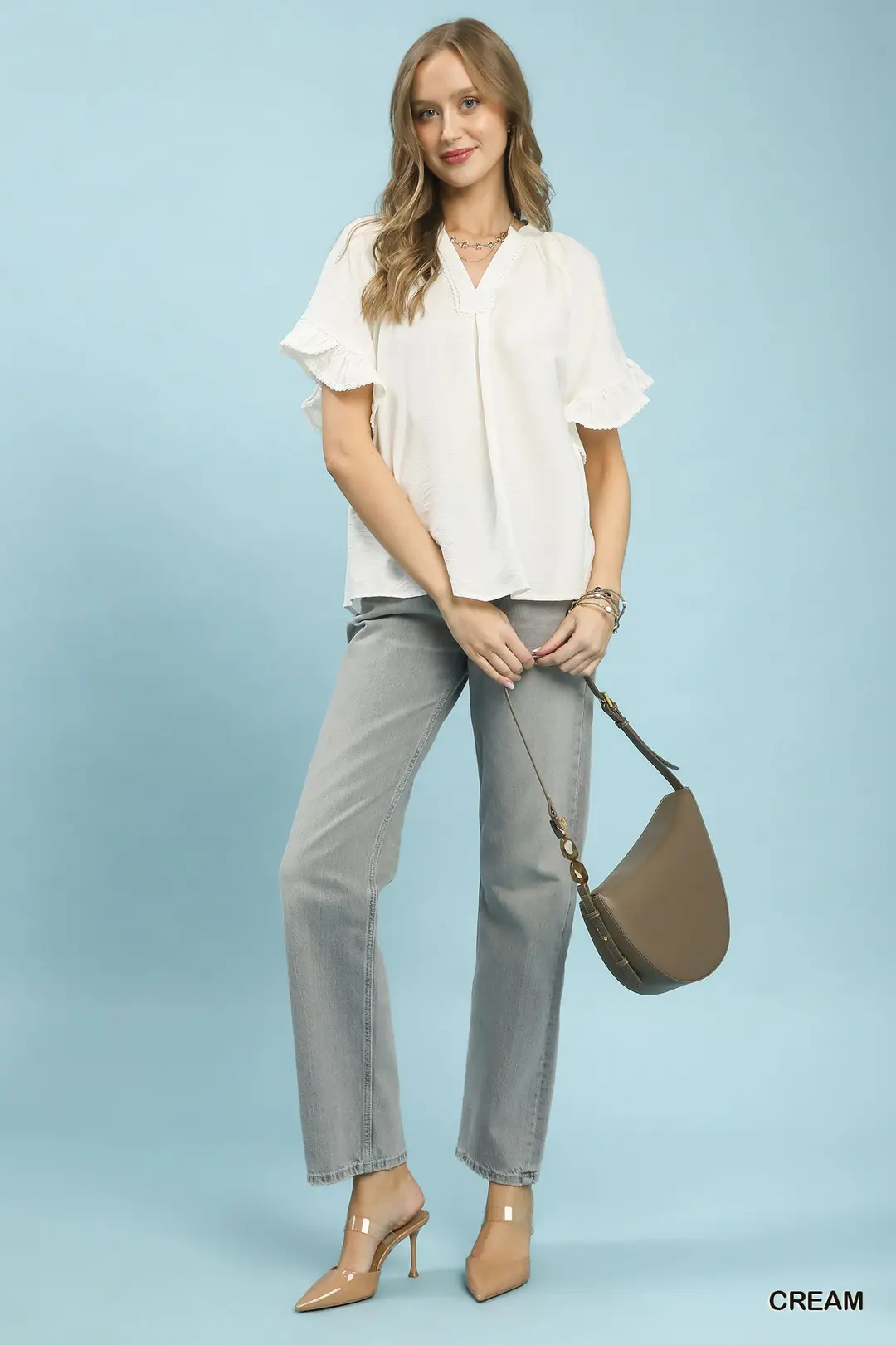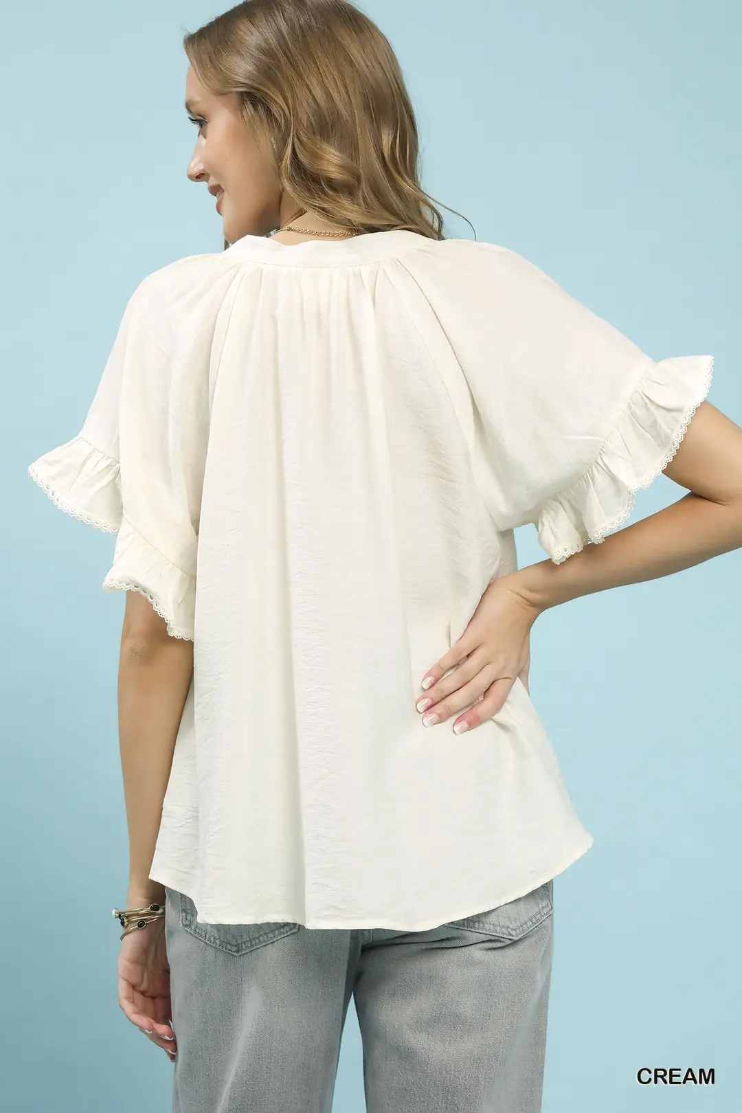 Umgee Ruffle Sleeve V-Neck Flutter Blouse