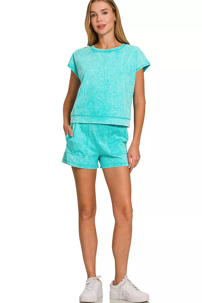 Zenana Premium Cotton Washed Sleeveless Top & Shorts Set