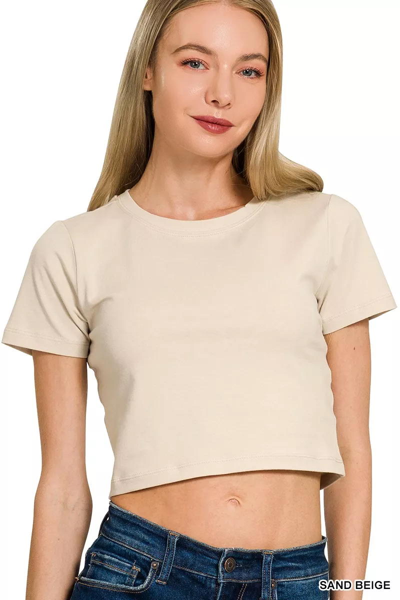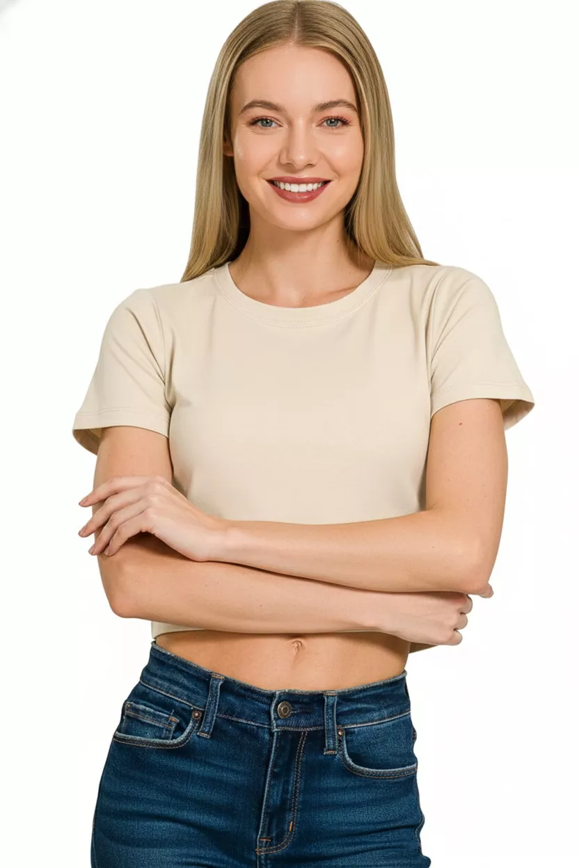 Zenana Cotton Short Sleeve Round Neck Cropped Top
