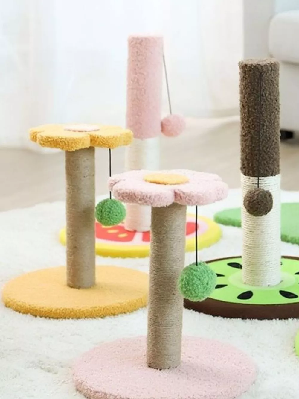 Flower-Shaped Cat Scratching Post with Plush Base