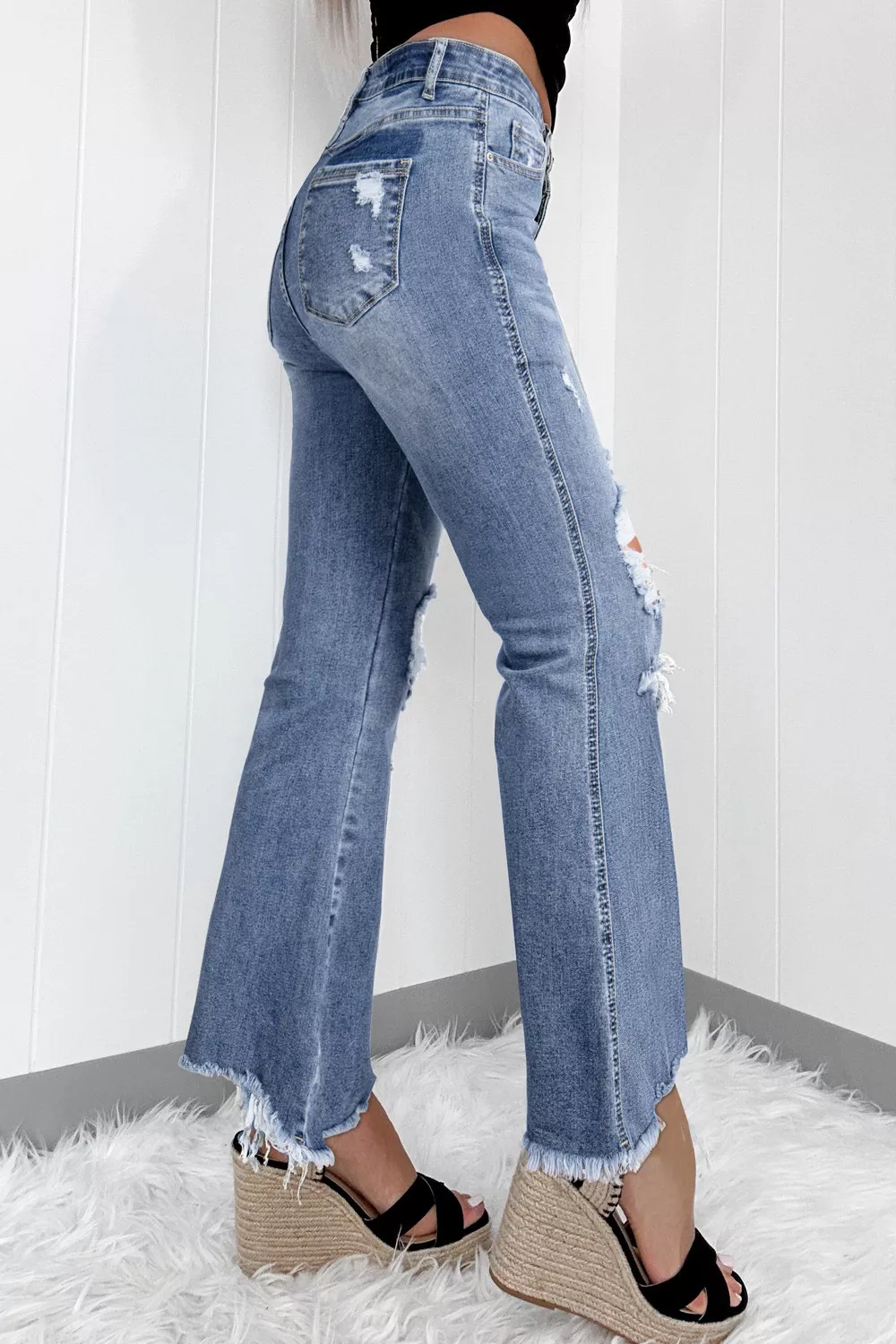 - Features:Distressed,Raw Hem