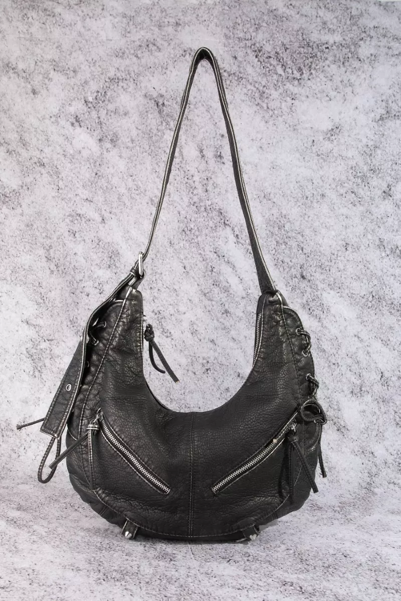 The Larger Leather Crescent Shoulder Bag is a stylish and spacious accessory for your everyday needs. Crafted from high-quality leather, this bag exudes luxury and durability. Its crescent shape adds a unique touch to your outfit, making a fashion statement. With ample room for all your essentials, it is both practical and fashionable. Carry the Larger Leather Crescent Shoulder Bag with confidence and elevate your style effortlessly.