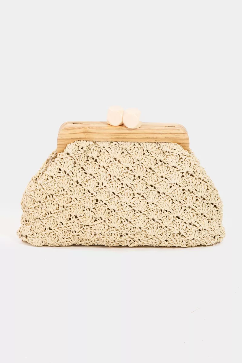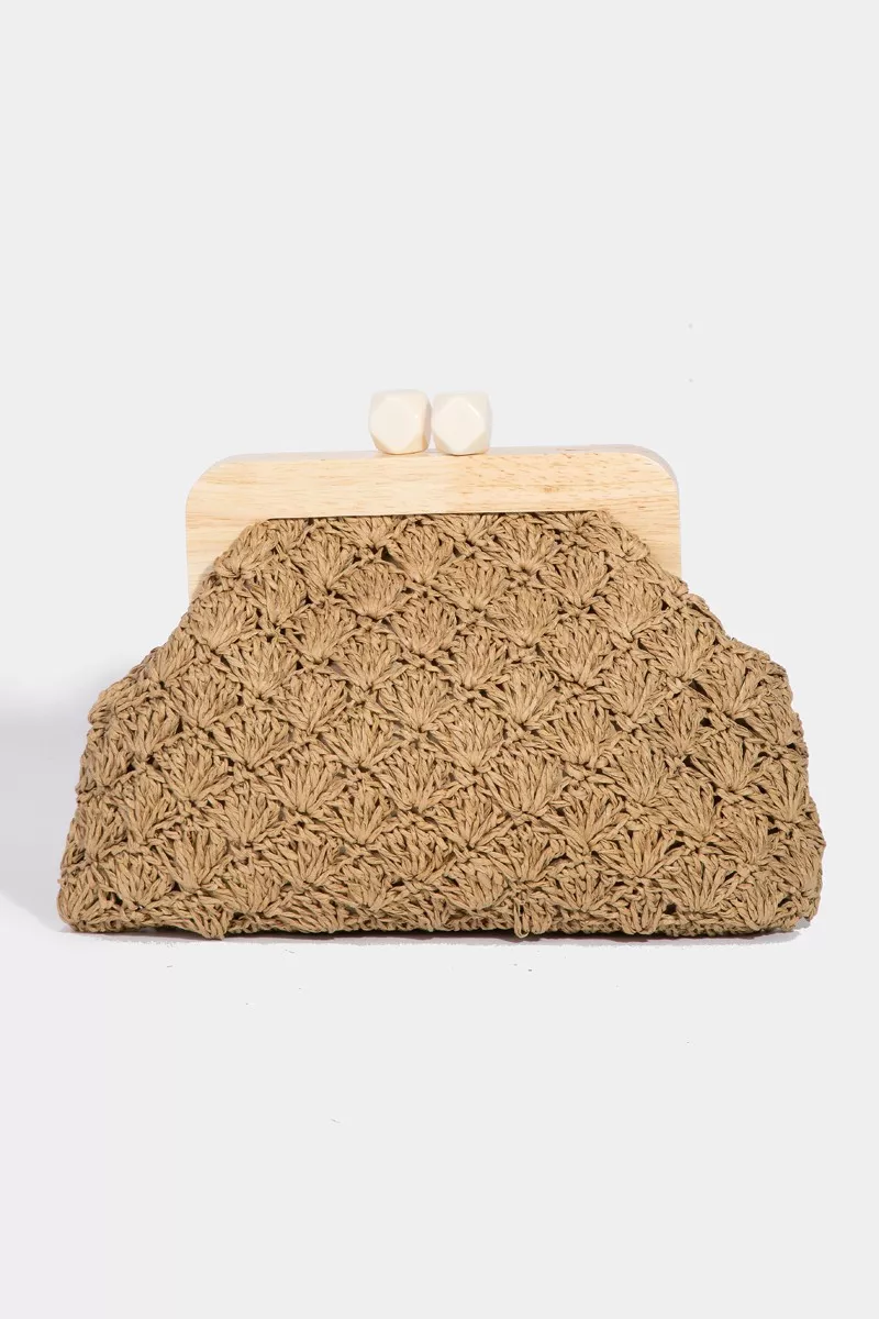 Fame Straw Braided Wooden Frame Cluch Bag