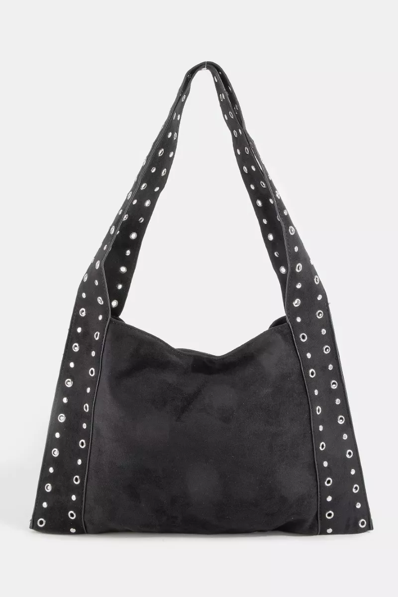 Elevate your accessories collection with the Grommet Strap Suede Shoulder Bag, a stylish and versatile piece that combines luxurious suede material with edgy grommet detailing. The grommet strap adds a touch of modern flair to the classic shoulder bag design. Crafted from high-quality suede, this shoulder bag offers both durability and sophistication. The adjustable strap allows for comfortable wear and customization. Make a fashion statement with the Grommet Strap Suede Shoulder Bag, perfect for adding a chic touch to any outfit.