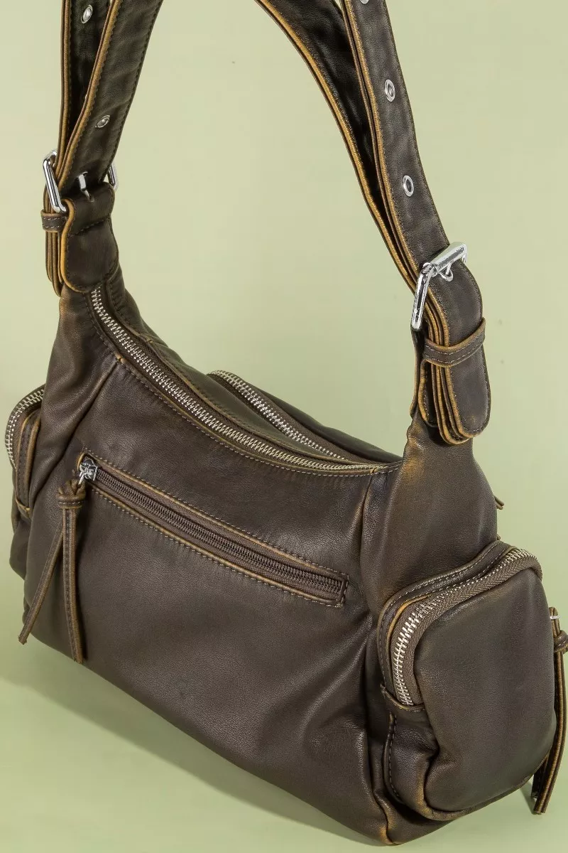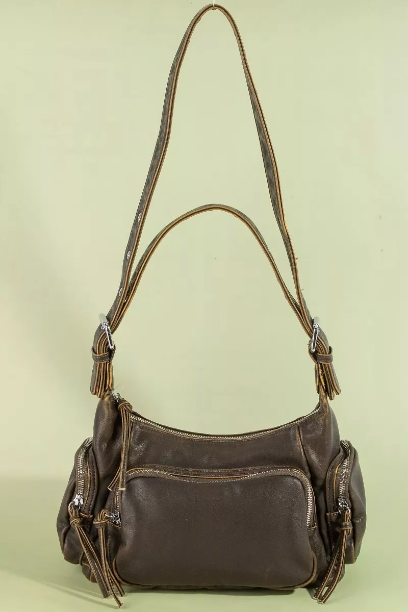 Fame Multi Pocket Leather Shoulder Bag