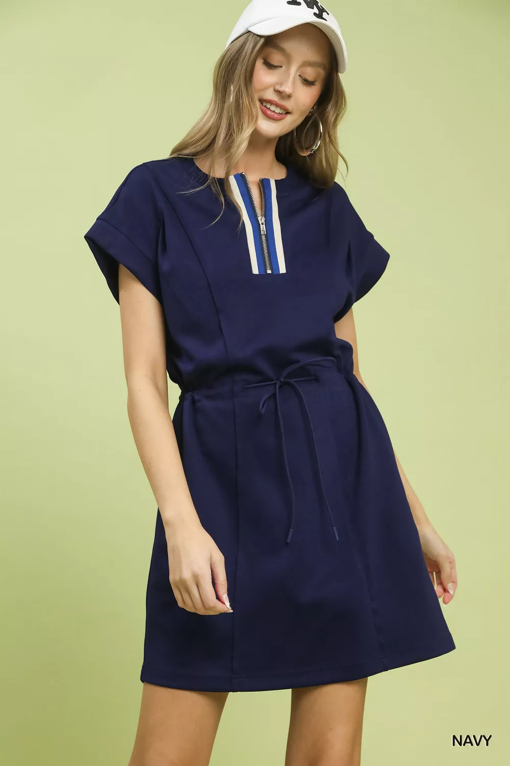 The Knit Zip Front Drawstring Dress is a stylish and versatile piece for your wardrobe. Its zip-front design with contrast trim adds a modern touch to the dress. The short dolman sleeves offer a relaxed and laid-back look, perfect for casual wear. With an adjustable drawstring waist, you can customize the fit to suit your silhouette. The contrasting details add a chic element to the overall design. Please note that this dress is not lined, providing a lightweight and breathable feel for comfort. Elevate your casual style with this trendy and easy-to-wear dress that combines fashion and functionality seamlessly.
