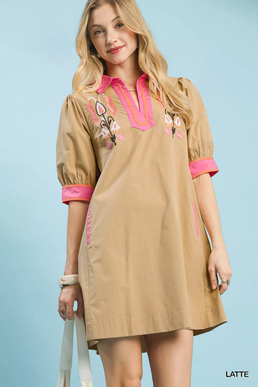The Embroidered Contrast Trim Tunic Dress is a chic and versatile piece that adds a touch of elegance to your wardrobe. Featuring intricate embroidery and contrast trim detailing, this tunic dress exudes a stylish and sophisticated look. The tunic silhouette offers a comfortable and relaxed fit, perfect for various occasions. Whether dressed up with heels or worn casually with sandals, this dress is a versatile option for any wardrobe. Elevate your style with this beautifully designed tunic dress that effortlessly combines fashion and comfort.