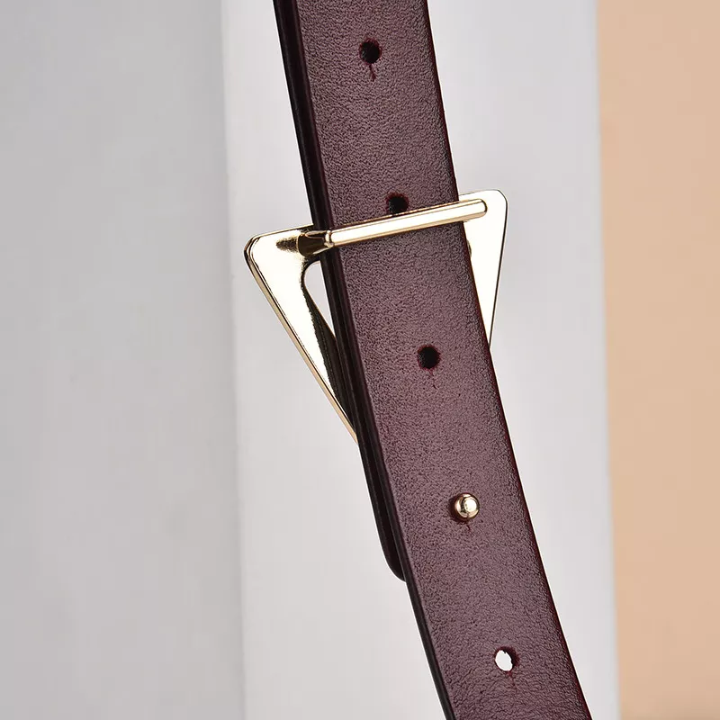 Triangle Buckle Leather Skinny Belt