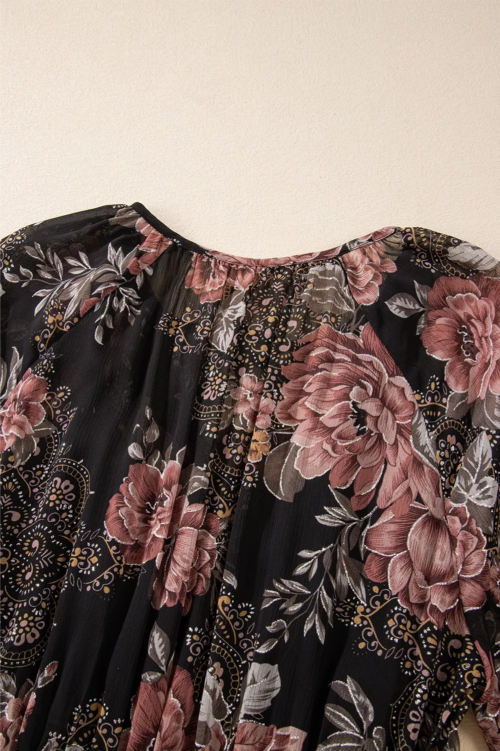 Floral Print Tie Neck Mini Dress