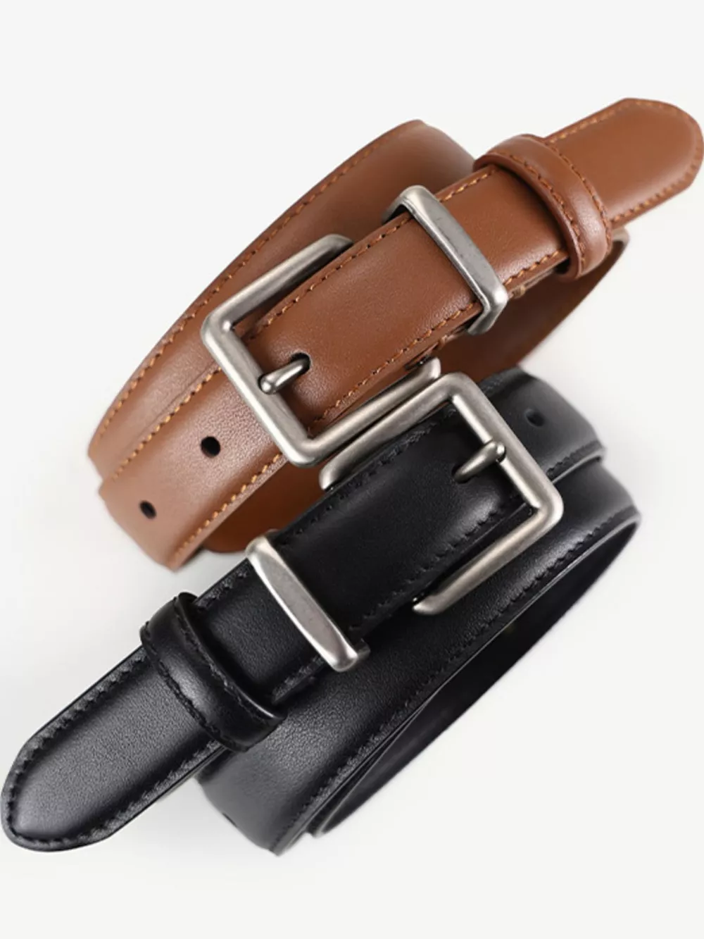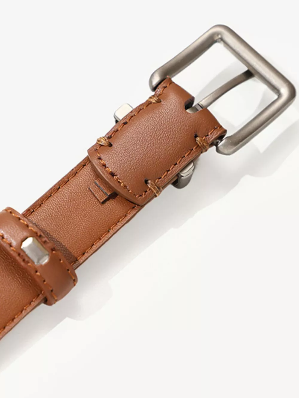 Classic Leather Belt with Square Buckle