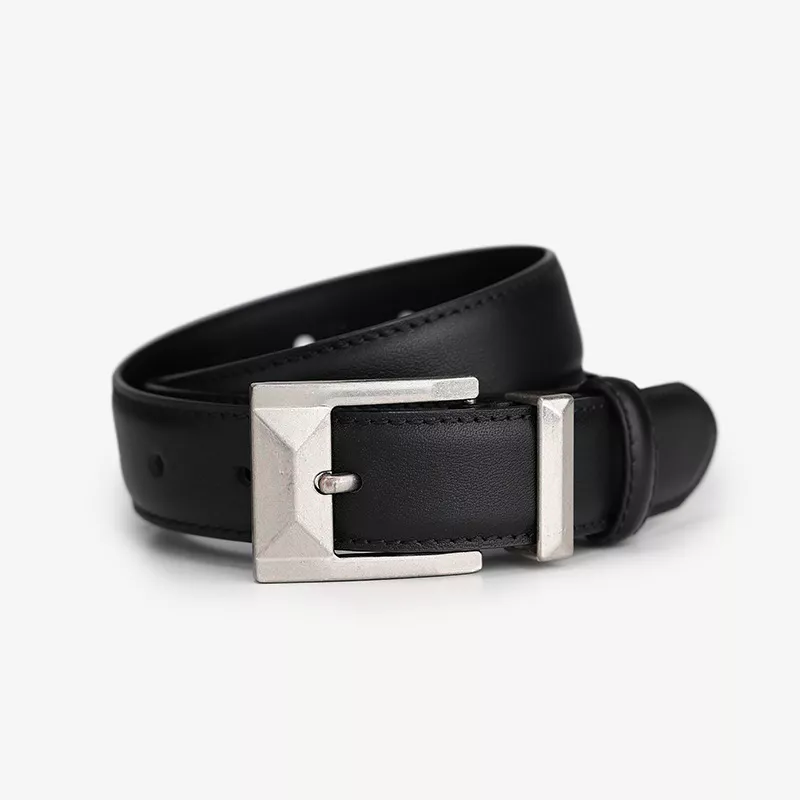Leather Belt with Geometric Buckle