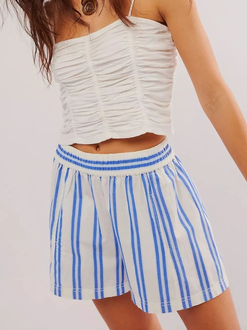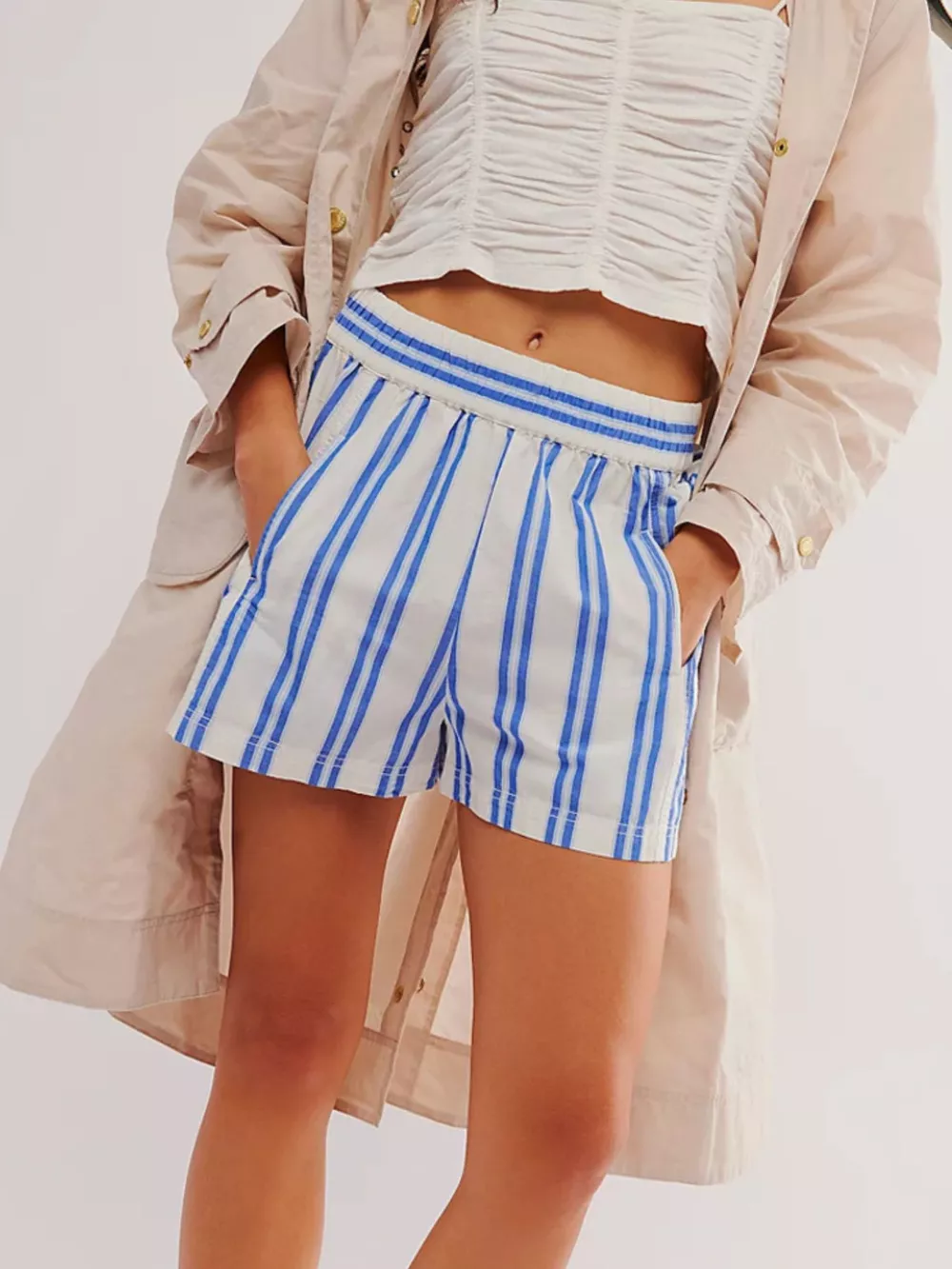 Striped Elastic Waist Casual Shorts