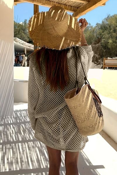 Collared Neck Openwork Crochet Knit Cover Up