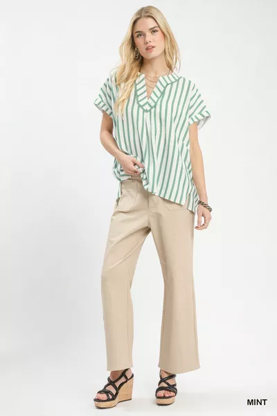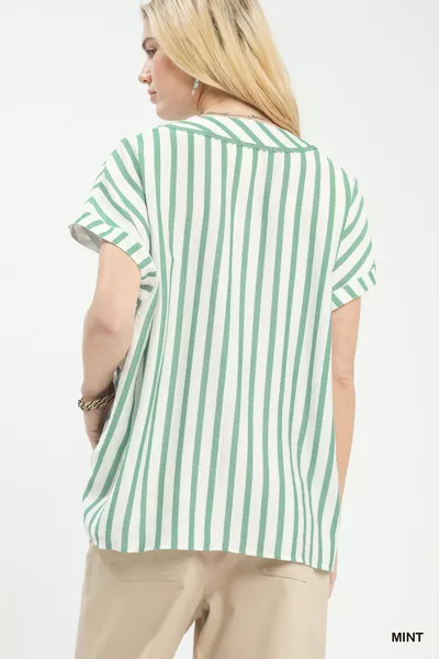 Umgee Mixed Stripe Split Neck Oversized Blouse