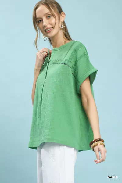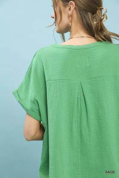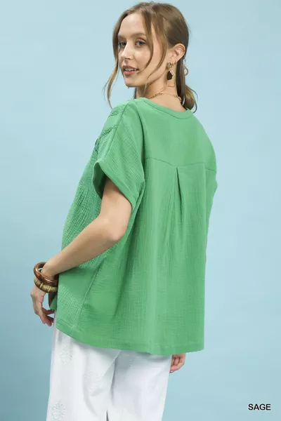 Umgee Textured Gauze Split-Neck Boho Blouse