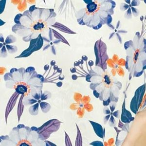 A floral print jacquard ruffle top is a beautiful and feminine piece of clothing. This type of top typically features a floral pattern woven into the fabric using the jacquard technique, creating a textured and intricate design. The addition of ruffles adds a soft and romantic touch to the top, making it perfect for a variety of occasions, from casual outings to more formal events. Pair it with your favorite jeans or a skirt for a stylish and sophisticated look.