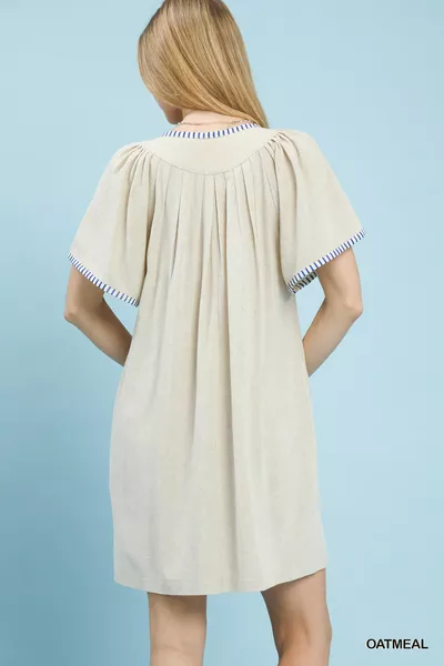 Umgee Linen Trim Tunic Dress