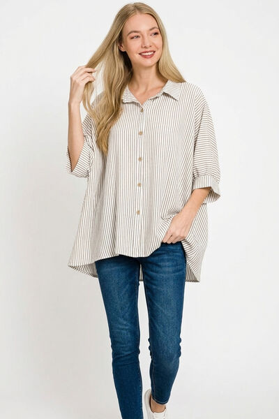Zenana Woven Stripe Button Down Boxy Shirt