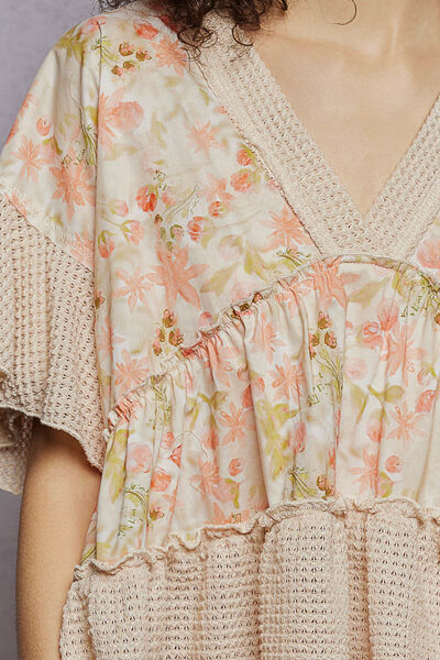 POL Floral Print V-Neck Woven Blouse with Gentle Gathers