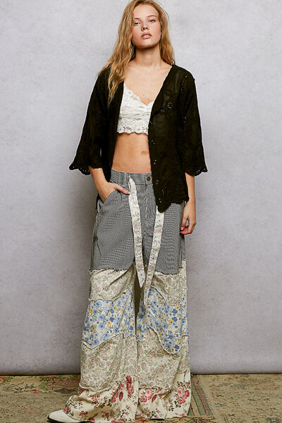 POL Floral Eyelet V-Neck Salloped Shirt
